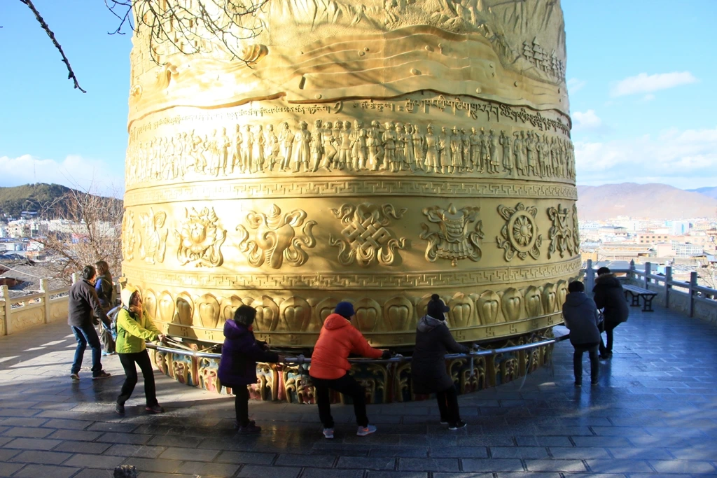 서서히 서산으로 넘어가는 해를 따라 고성으로 향한다. 고성은 거북처럼 야트막한 구이산(龟山)과 접해 있다. 산자락에 대불사라는 자그마한 사원이 있다. 사원 크기에 어울리지 않게도 세계에서 가장 크다고 하는 마니룬(또는 마니차)이 나타난다. 여섯 글자의 주문인 ‘옴마니밧메훔’을 새긴 원통이다. 대부분 손에 쥐고 다니거나 사원이나 광장에 아담하게 설치돼 있다.