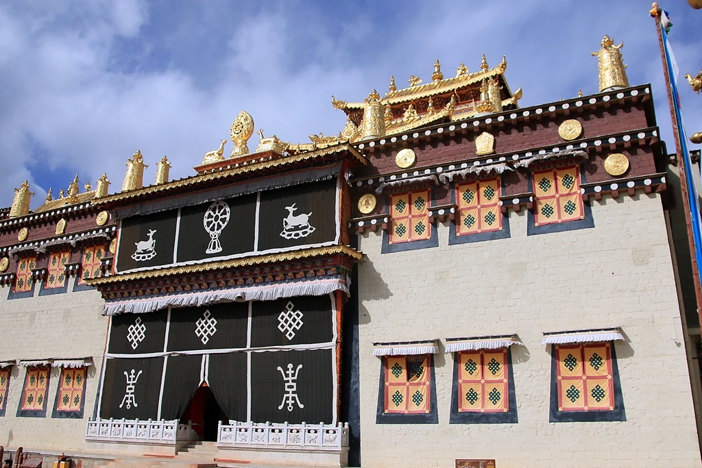송찬림에는 계율을 받은 승려가 거주하는 캉찬(康参)이라는 건물이 8채 있다. 연꽃의 여덟 잎을 상징한다. 승려 20여 명씩 공동생활을 하는 미찬(密参)도 많다. 가파른 계단을 오르고 광장으로 들어서면 본전인 자창(扎仓) 앞에 이른다. 자창 대전은 승려의 학원으로 1,600명을 수용할 만큼 큰 공간이다. 왼쪽 오른쪽에는 각각 티베트 불교의 종교개혁가이자 최대 교파인 겔룩파의 창시자인 총카파(宗喀巴) 대전과 석가모니 대전이 위치한다. 석가모니 불상에게 봉공하면 반드시 응답한다고 알려져 있다. 1936년 여름 장정 중이던 홍군의 허룽(贺龙) 장군도 이곳을 찾았다. 수많은 병사를 거느린 장수가 전쟁 중에 참배했다면 덕장이라 할만하다.