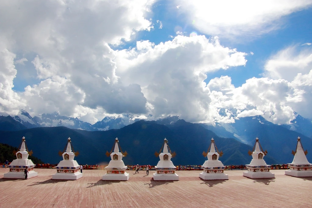 일몰에 오면 봉우리에 비친 붉은 노을이 환상적인 장면을 연출한다는데 아쉽게도 구름에 가려 13개 봉우리 정상을 보기 어려웠다. 하늘은 코발트이건만 풍선처럼 부푼 구름이 가리고 있으니 답답할 따름이다. 마음이 청결하지 않은 탓인가 자책도 해본다. 메이리설산은 도보여행이나 등반 코스로 세계인의 주목을 받고 있다. 간혹 등반 사고도 전해지는데 그만큼 오르고자 하는 욕구를 가득 풍기는 명산이다.