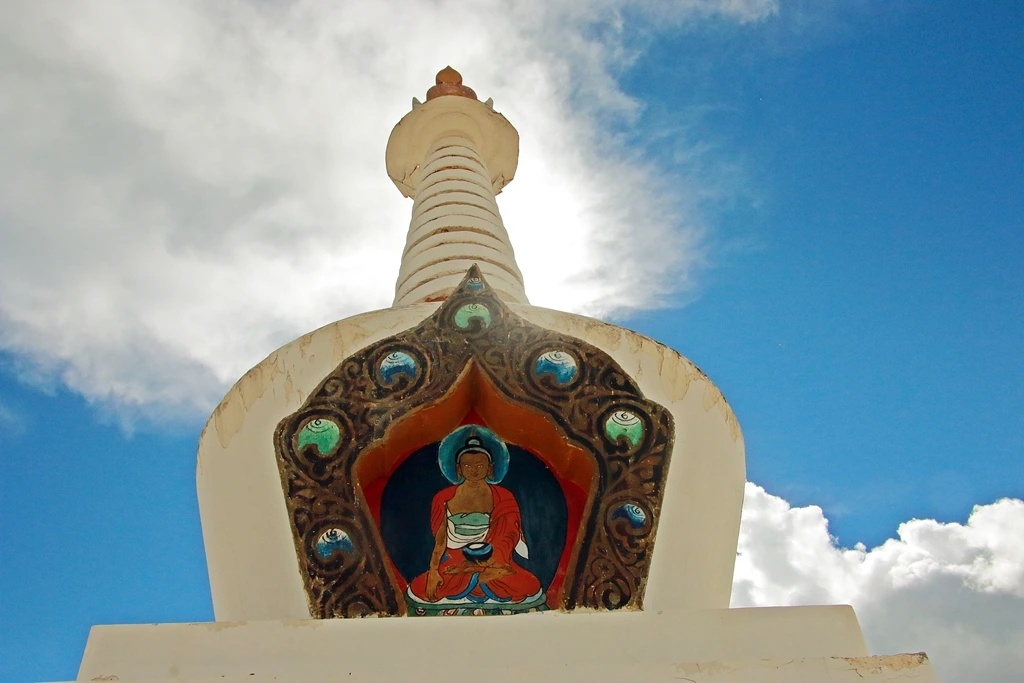 주봉은 6,740m로 아직도 인류가 정복하지 못한 처녀봉이다. 누구도 쉽게 도전하기 어려운 ‘신성’한 장소이다. 관망대에는 티베트 불탑인 초르텐이 13개 서 있는데 봉우리 숫자에 맞춰 예우하는 것이다. ‘태자 13봉(太子十三峰)’이라 불리는 봉우리는 모두 해발 6,000m가 넘는다. 그래서 태자를 영빈한다는 뜻으로 ‘영빈13탑(迎宾十三塔)’이라 불린다.