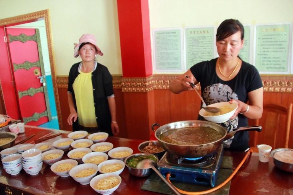 그릇에 담긴 국수를 후루룩 한 입에 먹고 나면 다시 국수를 더 담아준다. 먹고 또 먹고 하다 보면 몇 그릇 먹었는지 서로 모르게 된다. 한 입 먹고 돌 하나를 끄집어 내놓는다. 그렇게 매번 돌로 표시를 한다. ‘둘이 먹다 하나 죽어도 모른다’는 맛이라면 그럴 수도 있으리라. 함께 내온 돌 개수만큼 국수를 먹으면 자기 딸을 내준다는 이야기도 있다고 한다. 딸 이야기가 전설이라면 상금은 현실이다. 어느 가게는 지금껏 최고 기록이 147그릇이고 기록을 깨면 500위안(약 8만 5천 원)을 준다고 자랑하기도 한다. 돌을 씹어먹을 정도의 식성이라면 딸을 주고 싶지 않을까? 그만큼 일도 잘할 터이니 말이다.