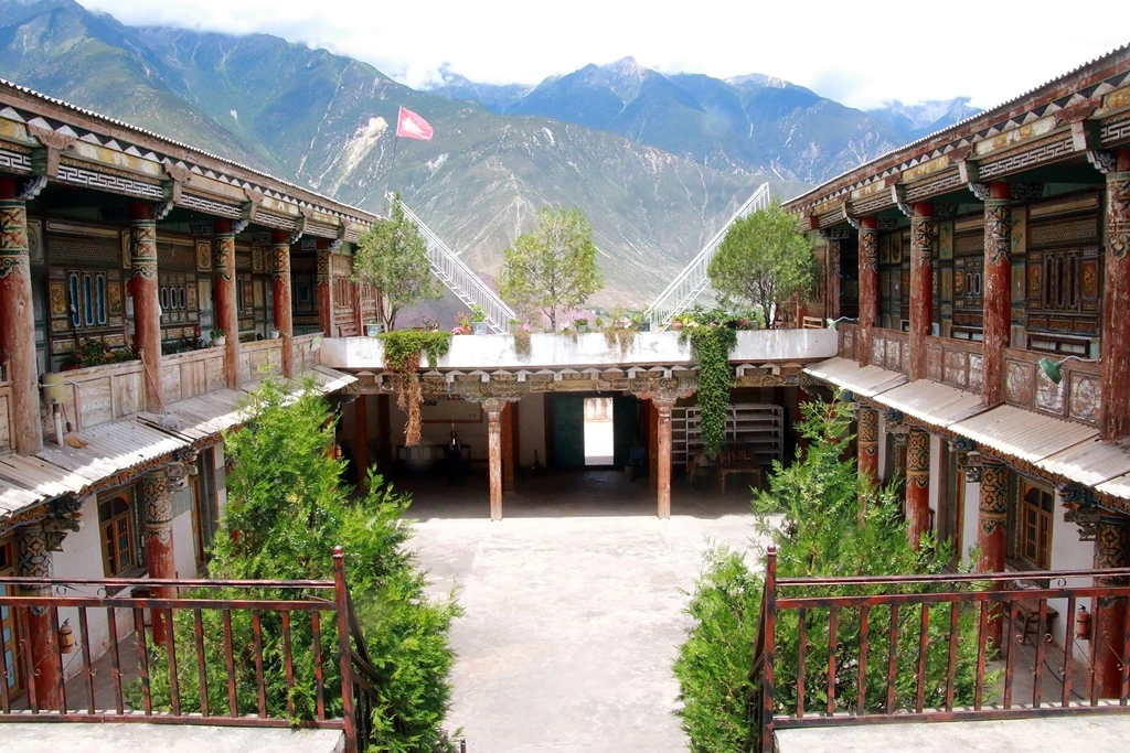 현지 민속과 서양식이 혼합된 문양과 구조여서 그런지 건축물이 독특하다. 백색 담벼락에는 십자가 모양으로 창문을 만들었다. 성당 안은 몇 군데 한자가 쓰여 있긴 하지만 대체로 우리네 성당과 크게 다르지 않다. 성당 입구에 서서 뒤돌아서면 고원의 산과 하늘에는 영락없이 티베트의 바람이 분다. 오성홍기 나부끼지만 그래도 티베트의 영혼이 숨 쉬고 있다.