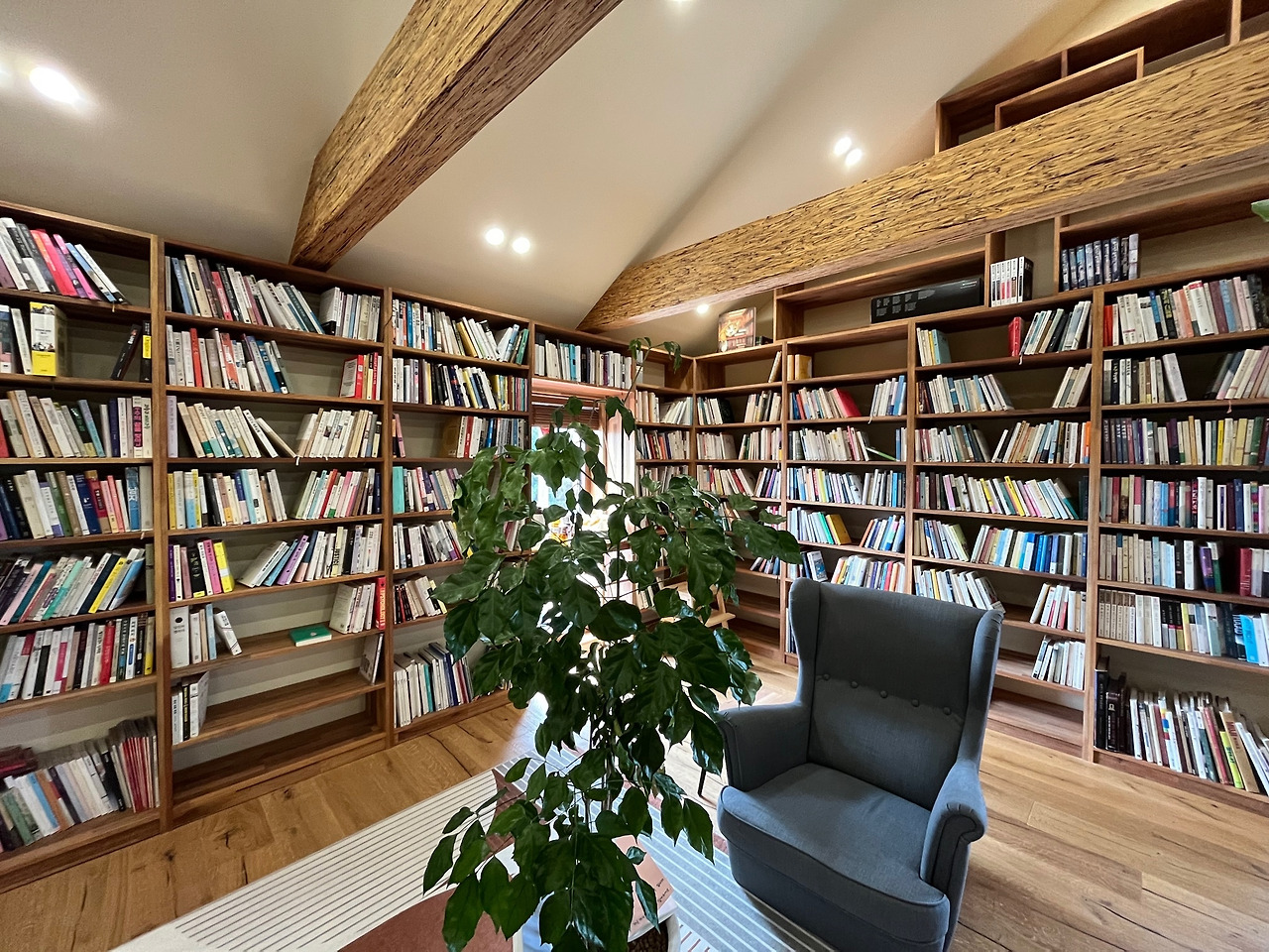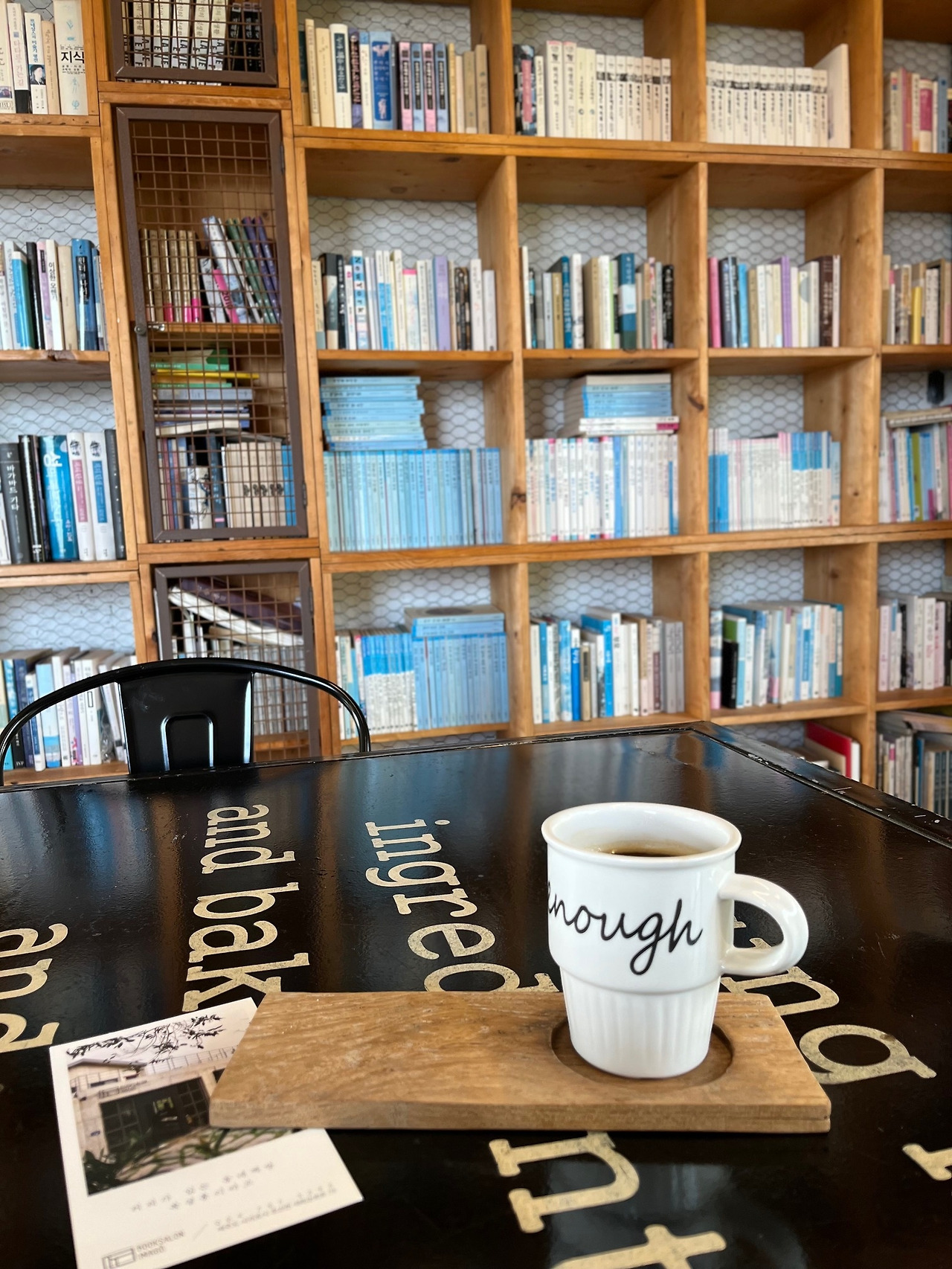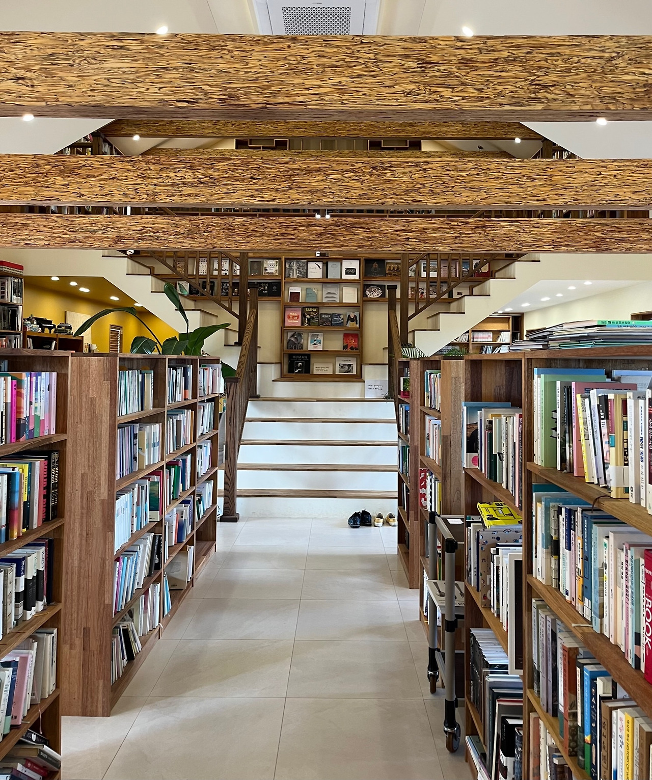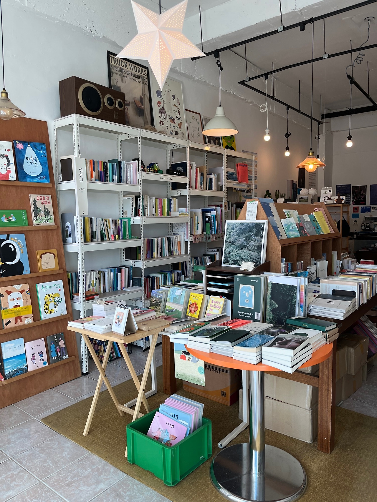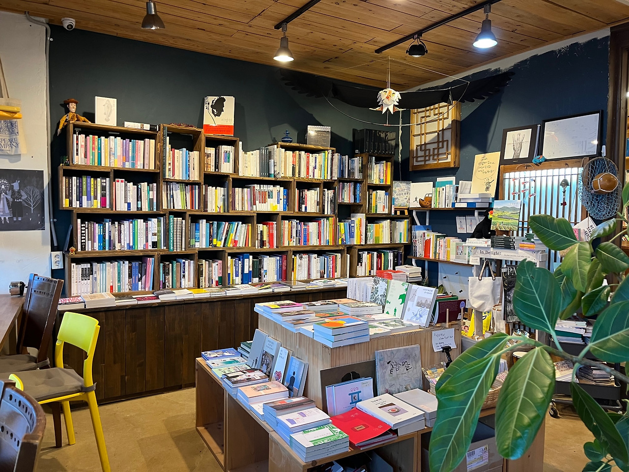 들어줄 사람도 없는 혼잣말이 가는 내 튀어나왔지만 책방에 들어선 순간, 그 불평은 한순간에 쏙 들어갔다. 중앙에 책이 빼곡하게 채워져 있는 나무 서가 옆으로 편안하게 앉아 책을 읽을 수 있는 좌식 의자와 테이블이 놓여 있고, 신발을 벗고 계단을 올라 2층으로 가면 마치 거실처럼 양쪽 벽으로는 책장이 그 앞으로는 안락해 보이는 1인용 소파가 여럿 놓여 있는, 보기만 해도 힐링이 되는 공간이 눈에 들어왔기 때문이다.