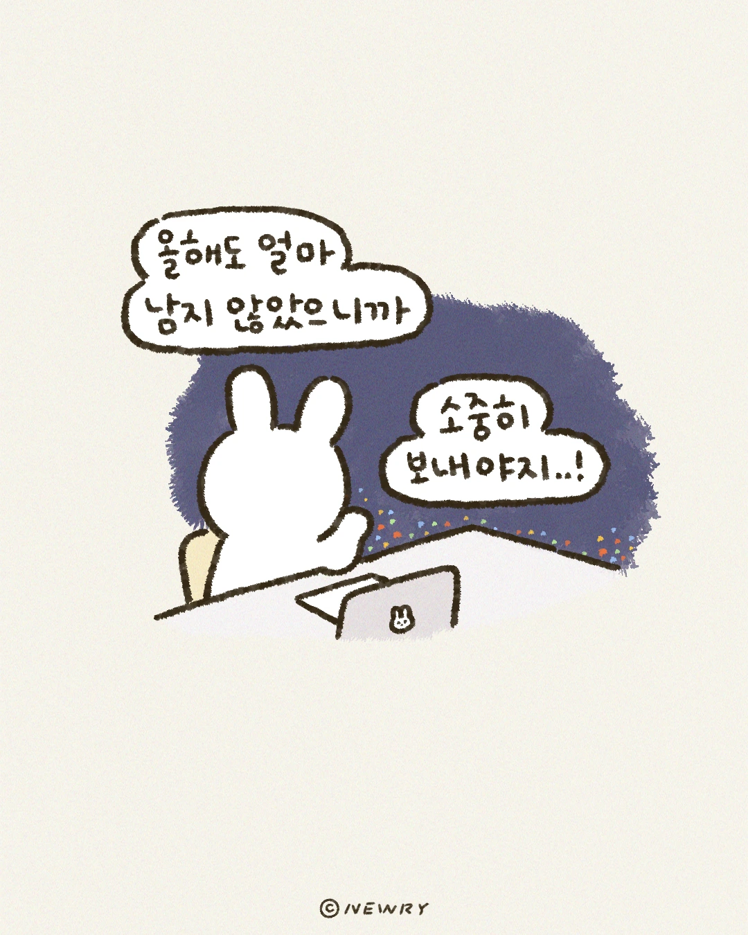 그리고 누구보다 최선을 다했다고 자부할 수 있는 해라면, 자신에게 정말 잘했다고 마음껏 칭찬해 주셨으면 좋겠습니다..!