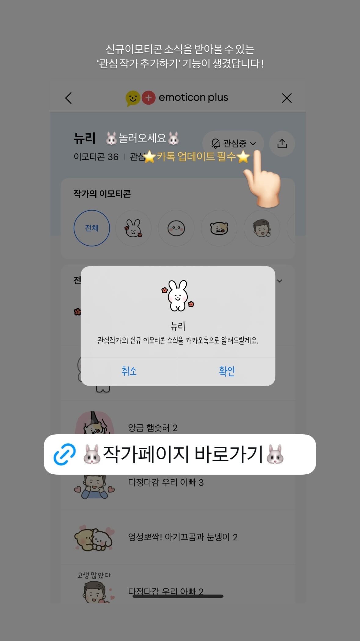 신규이모티콘 출시 소식을 받아볼 수 있는