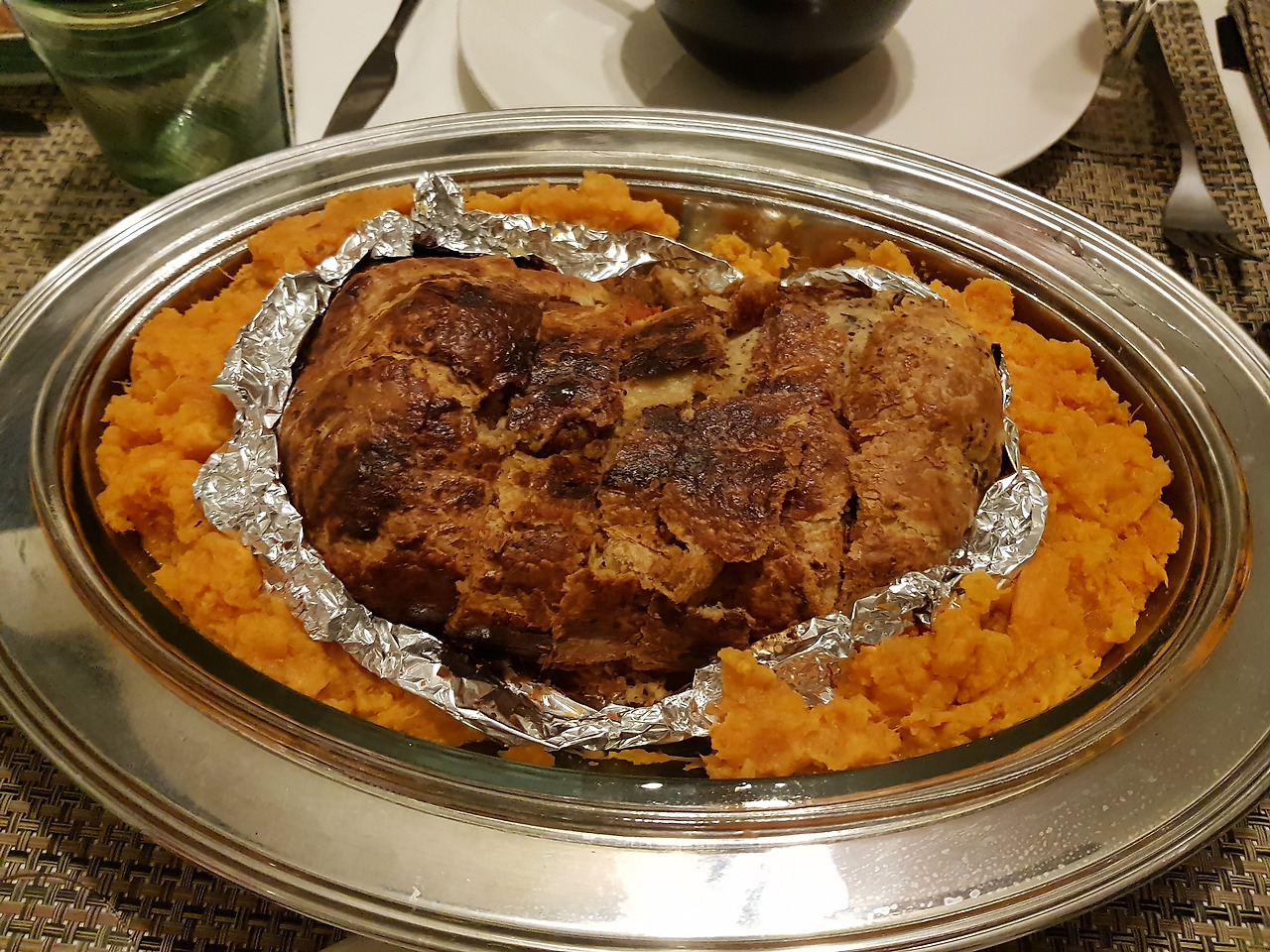 고기 둘레에 붉은 음식은 으깬 감자였는데 뭔 세상에 당근도 아니고 감자도 이런 종자가 있네...싶었다 그건데 저거 회사 급식에도 한번 나와서 이 때 기억나고 웃겼다.