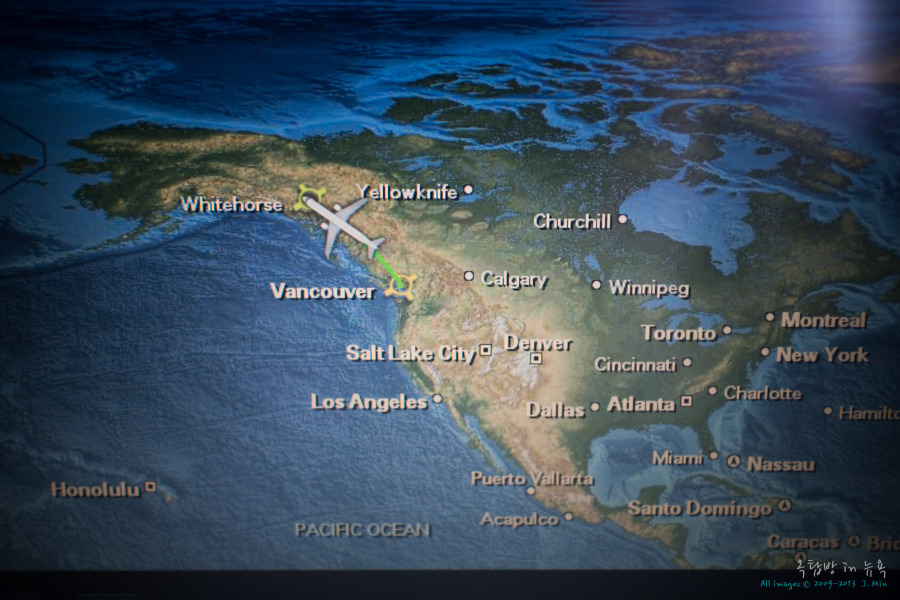 캐나다로 접어드니 세상이 하얗게 변해 있었다. 끝없이 펼쳐진 빙하와 산맥을 감상하며, 밴쿠버에서 비행기로 세 시간 거리의 캐나다의 화이트호스에 도착했다.