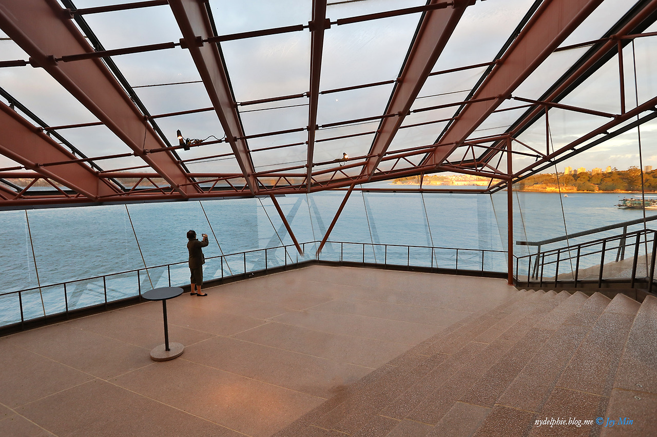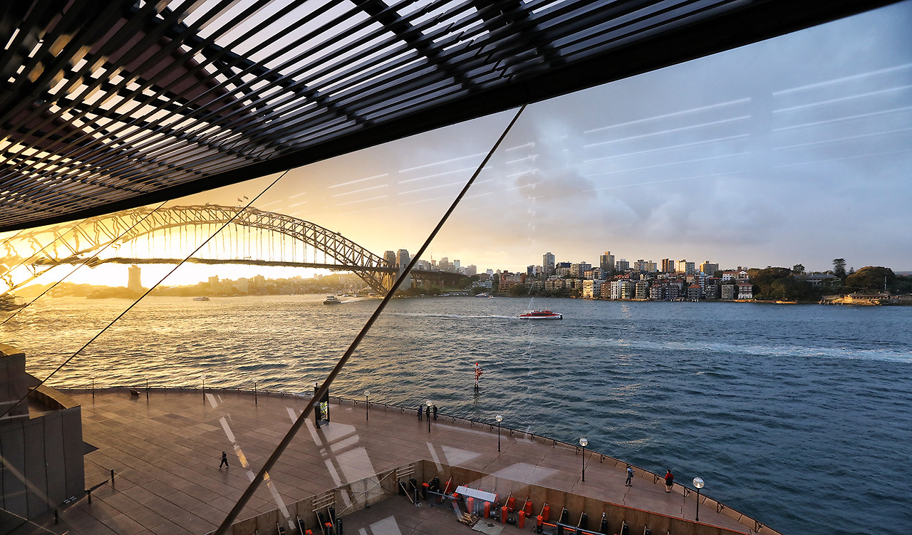 메인 로비 전면 유리창은 시드니 하버의 풍경이 파노라마로 펼쳐지도록 설계되었다. 오페라하우스에서 공연을 본다면 인터미션 시간에 음료 한 잔과 함께 이처럼 아름다운 풍경을 접하게 될 것이다.