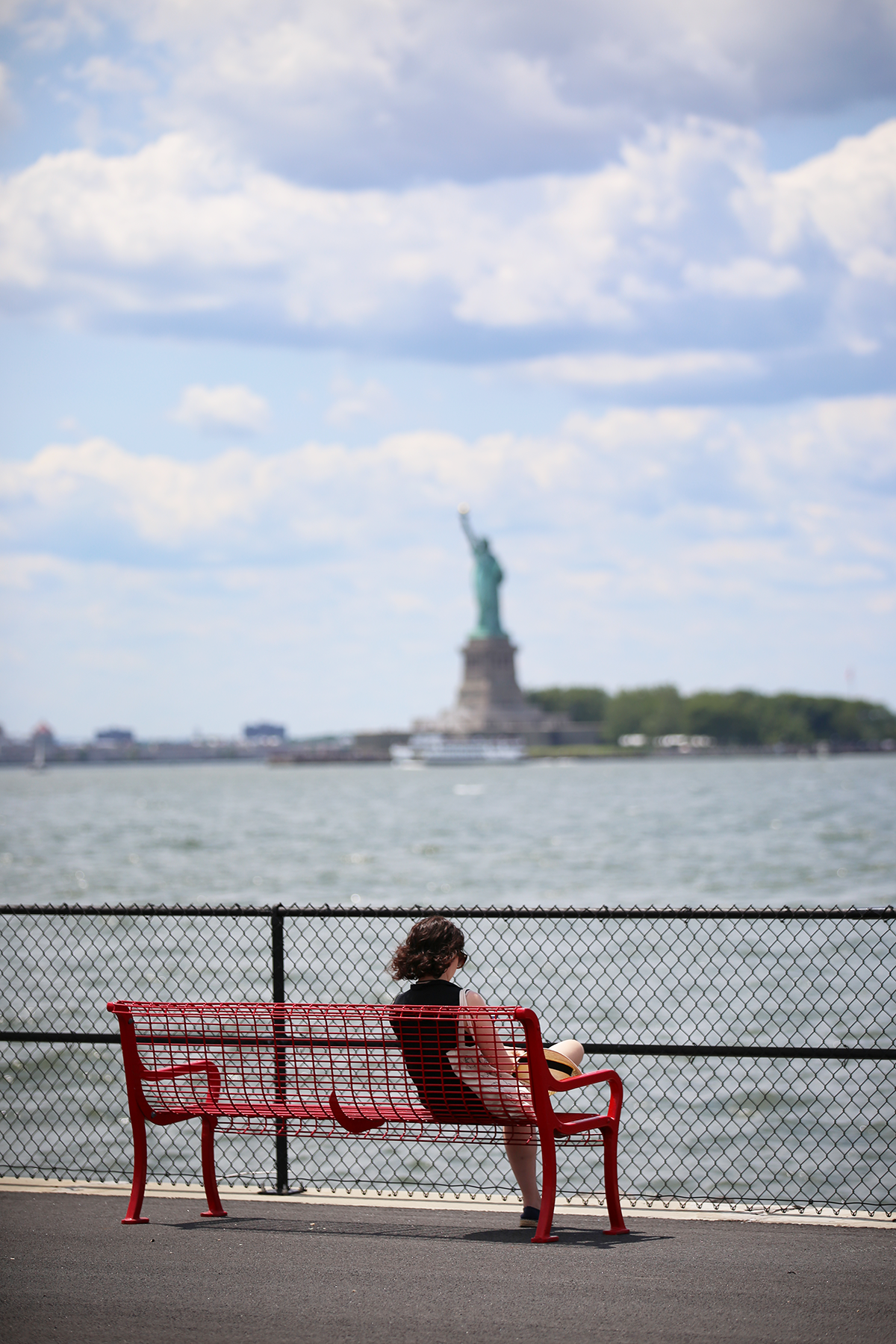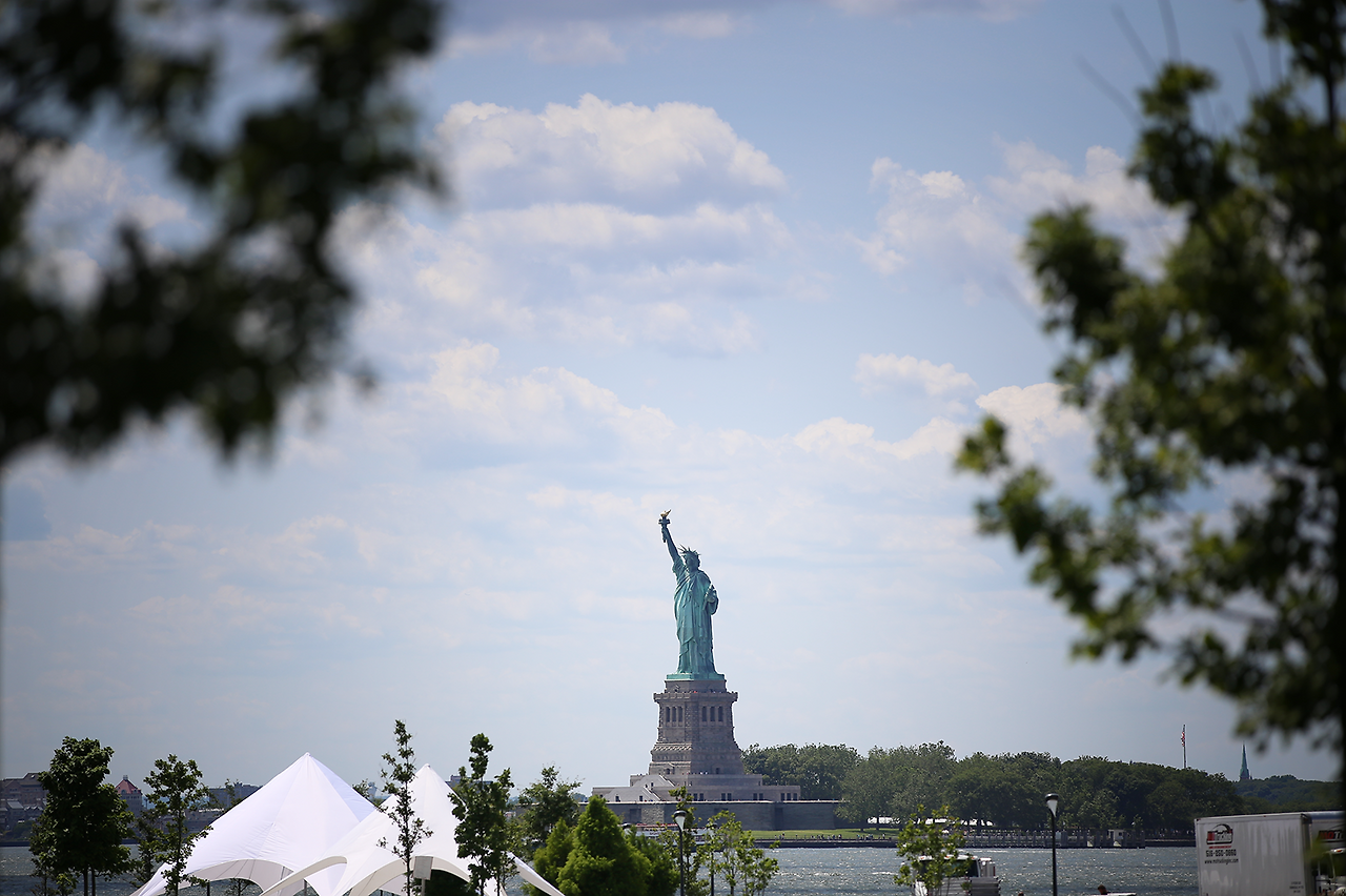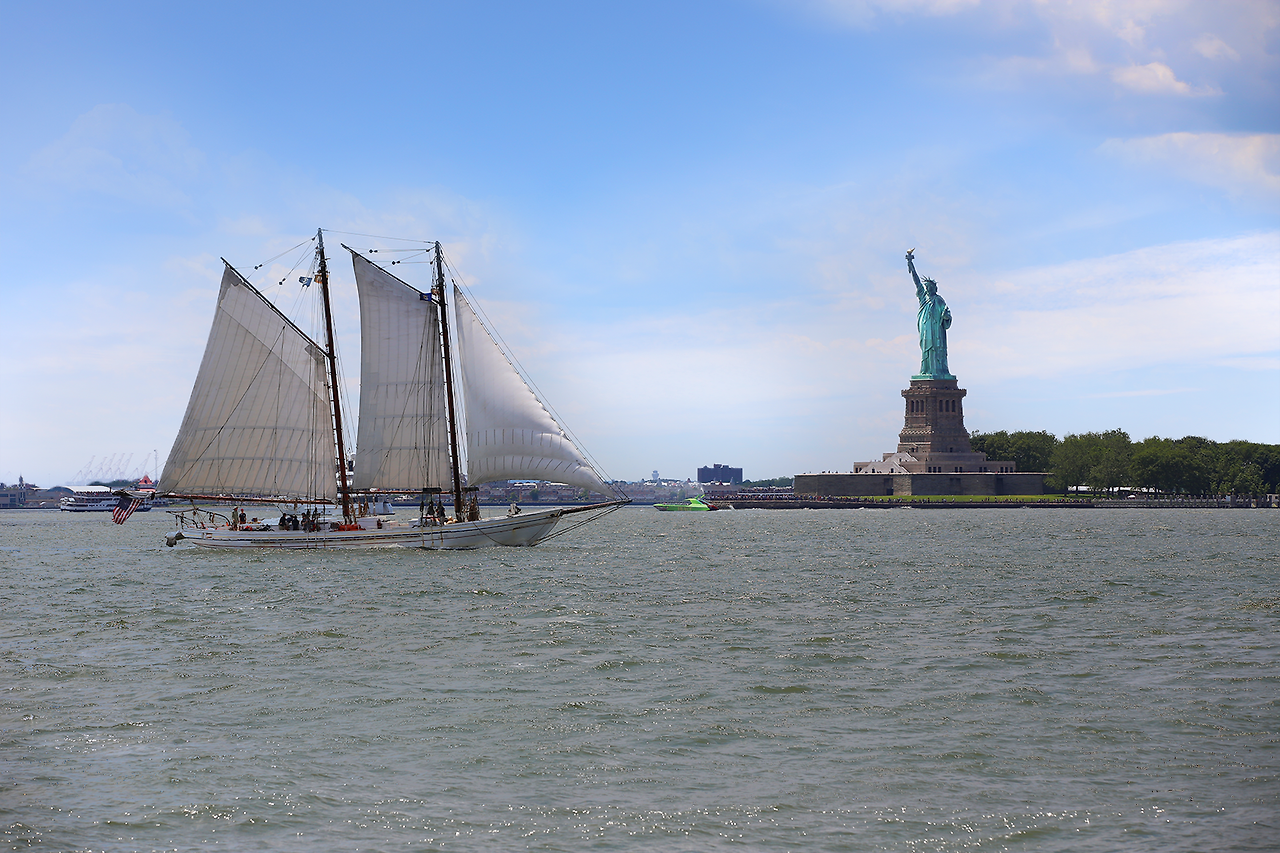 자유의여신상이 보이는 작은 섬,