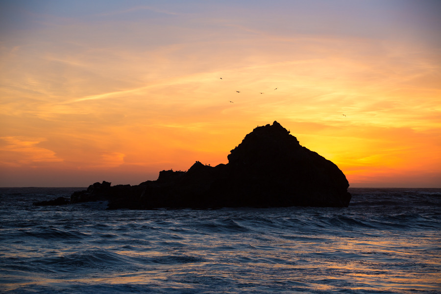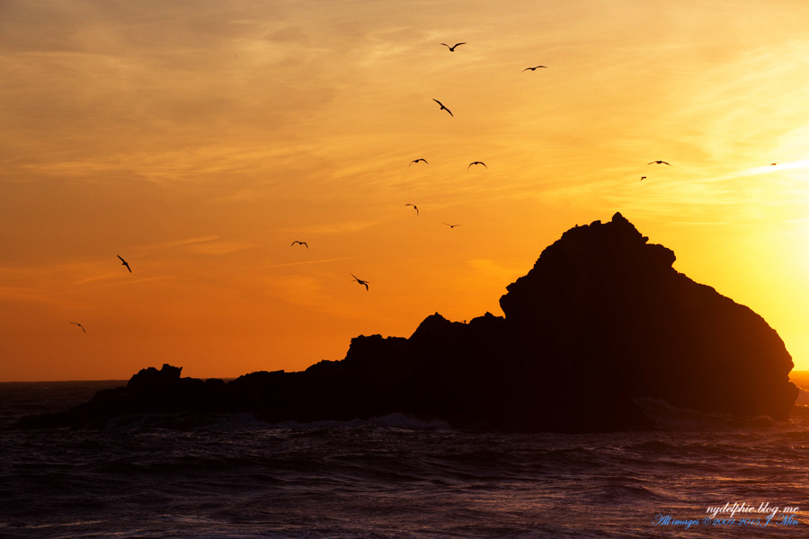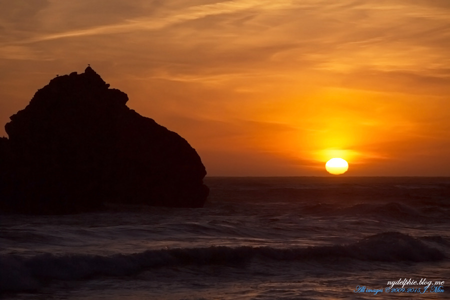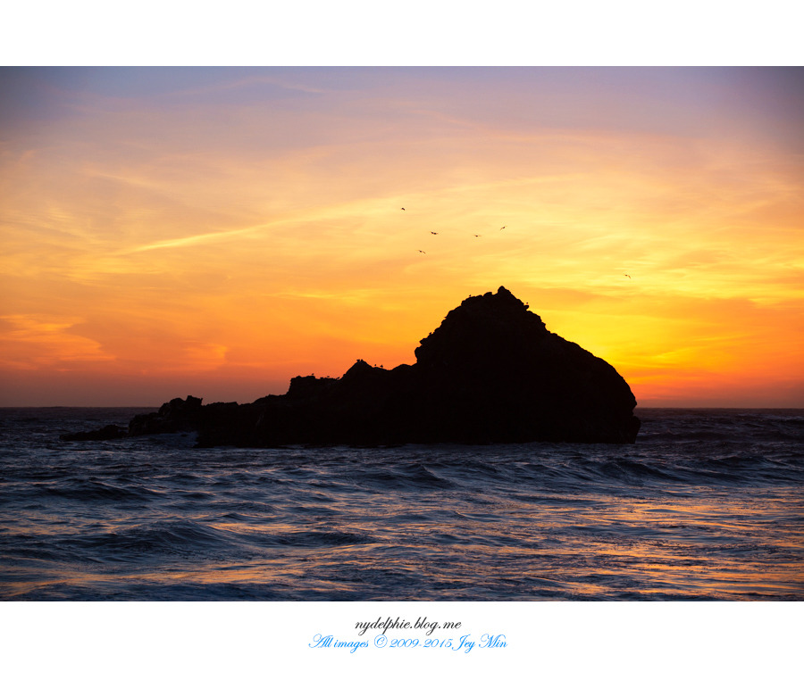 바다사자를 닮은 바위 너머로 해는 빠르게 기울었고