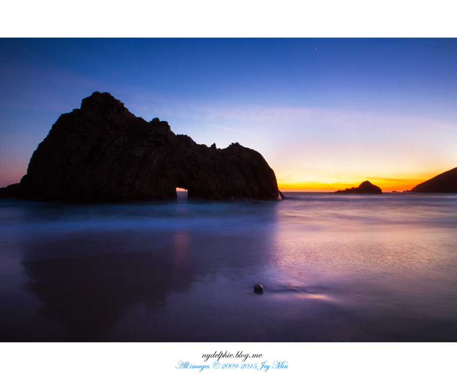 인터넷에서 본 단 한장의 사진을 촬영하기 위해 빅서에서 하루를 묵기로 했다. 숙소인 Big Sur Lodge에서 나와 캘리포니아 1번 주도를 따라 남하하다가 Sycamore Canyon Road로 접어들어 바닷가 쪽으로 5km 정도를 내려간다. 경사가 심하고 외길이라서 꽤 신경쓰였던 험로.
