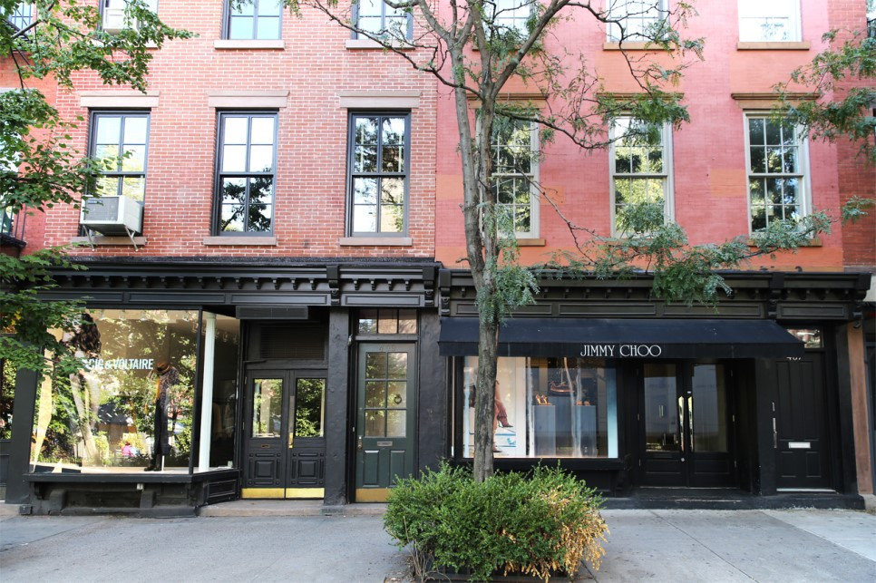 나지막한 브라운스톤의 건물 1층에 들어선 예쁜 가게들.