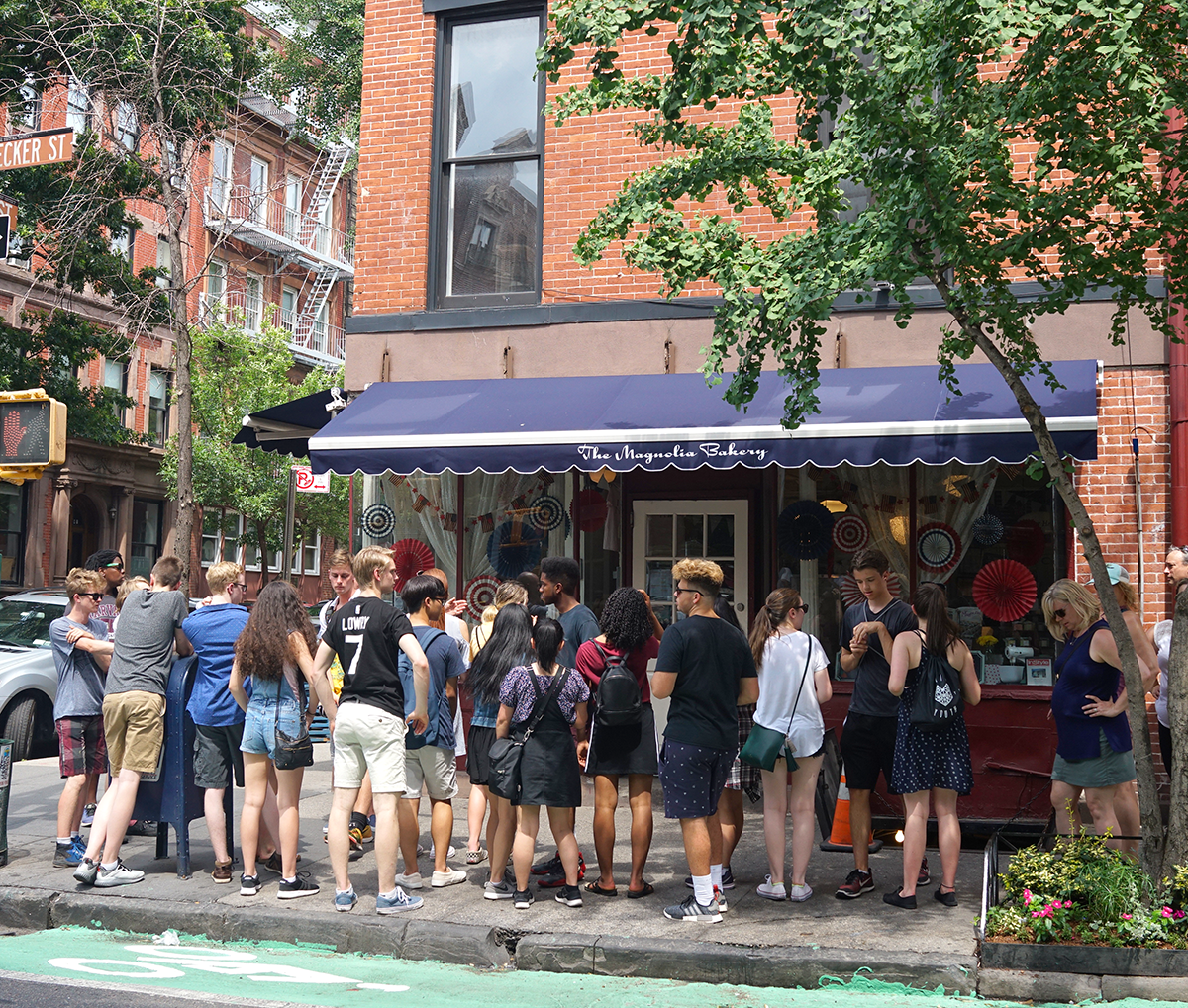 인기 미드의 주인공들이 벤치에 앉아 컵케이크를 먹던 장면이 널리 알려지면서, 그리니치 빌리지의 조그만 매장에서 하루 2천개의 컵케이크를 팔아치우던 매그놀리아 베이커리는 명실상부한 뉴욕의 명물이 되었고. 그리니치 빌리지의 본점 이외에 여러 곳에 체인점을 운영하고 있으며, 큰 인기에 힘입어 국내에도 진출했습니다.