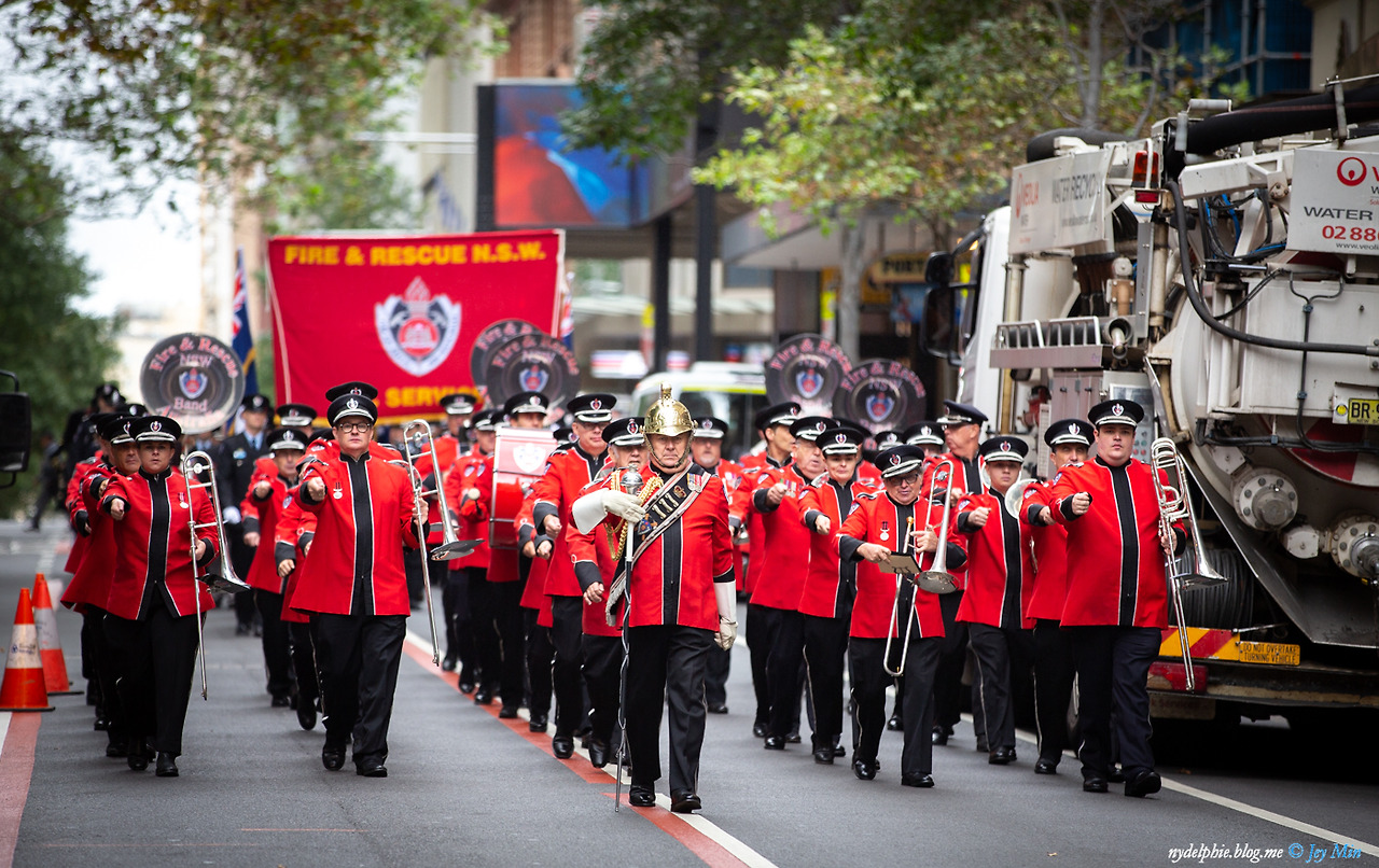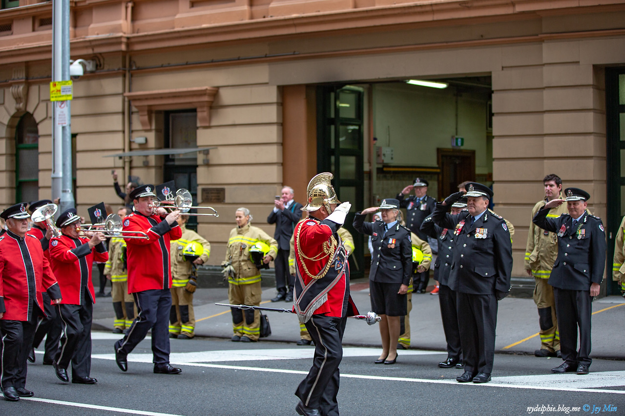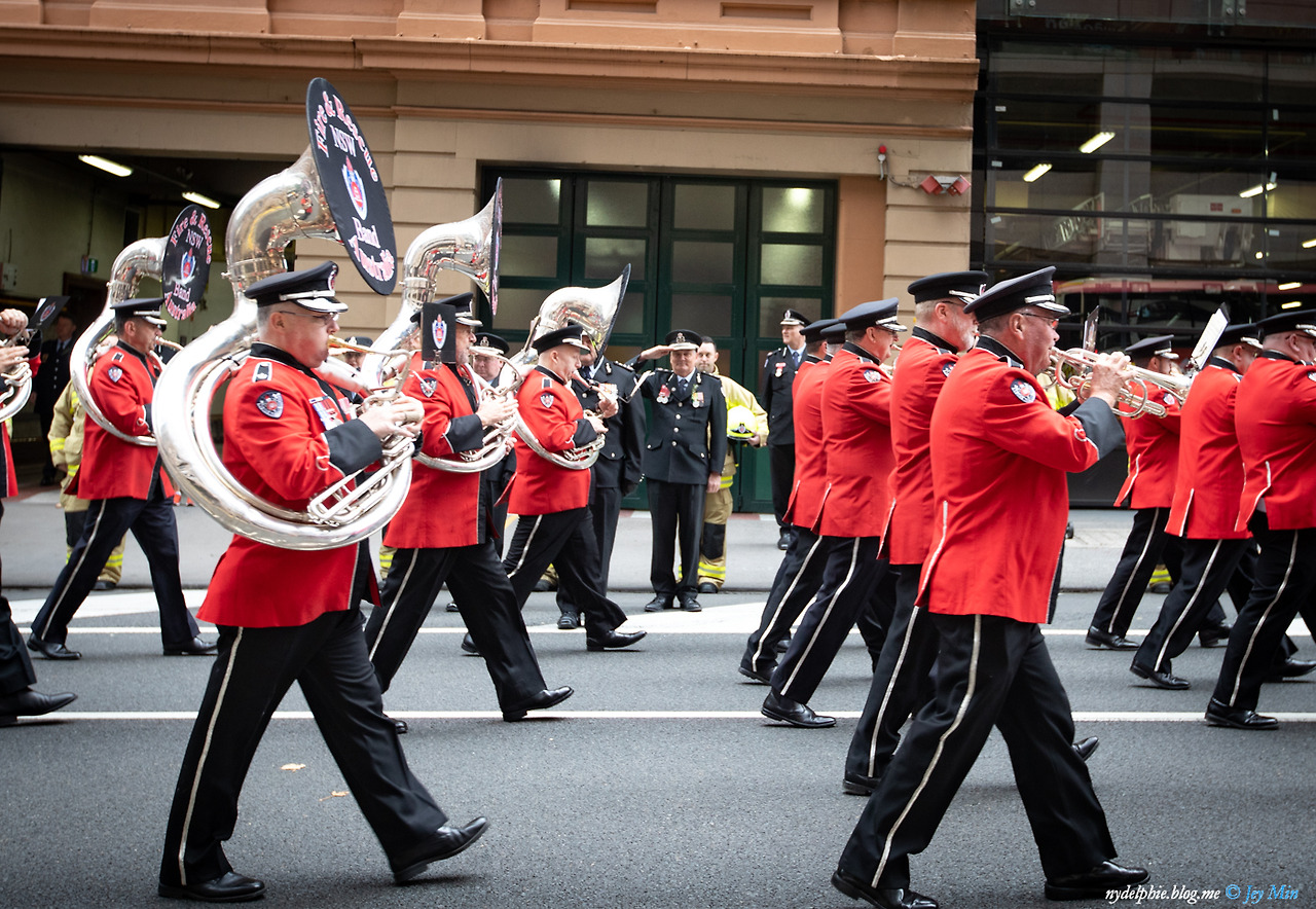 잠시 후 저쪽에서 힘차게 행진해오는 이들이 보였습니다. 뉴사우스웨일스의 퇴역 소방관들이었습니다.