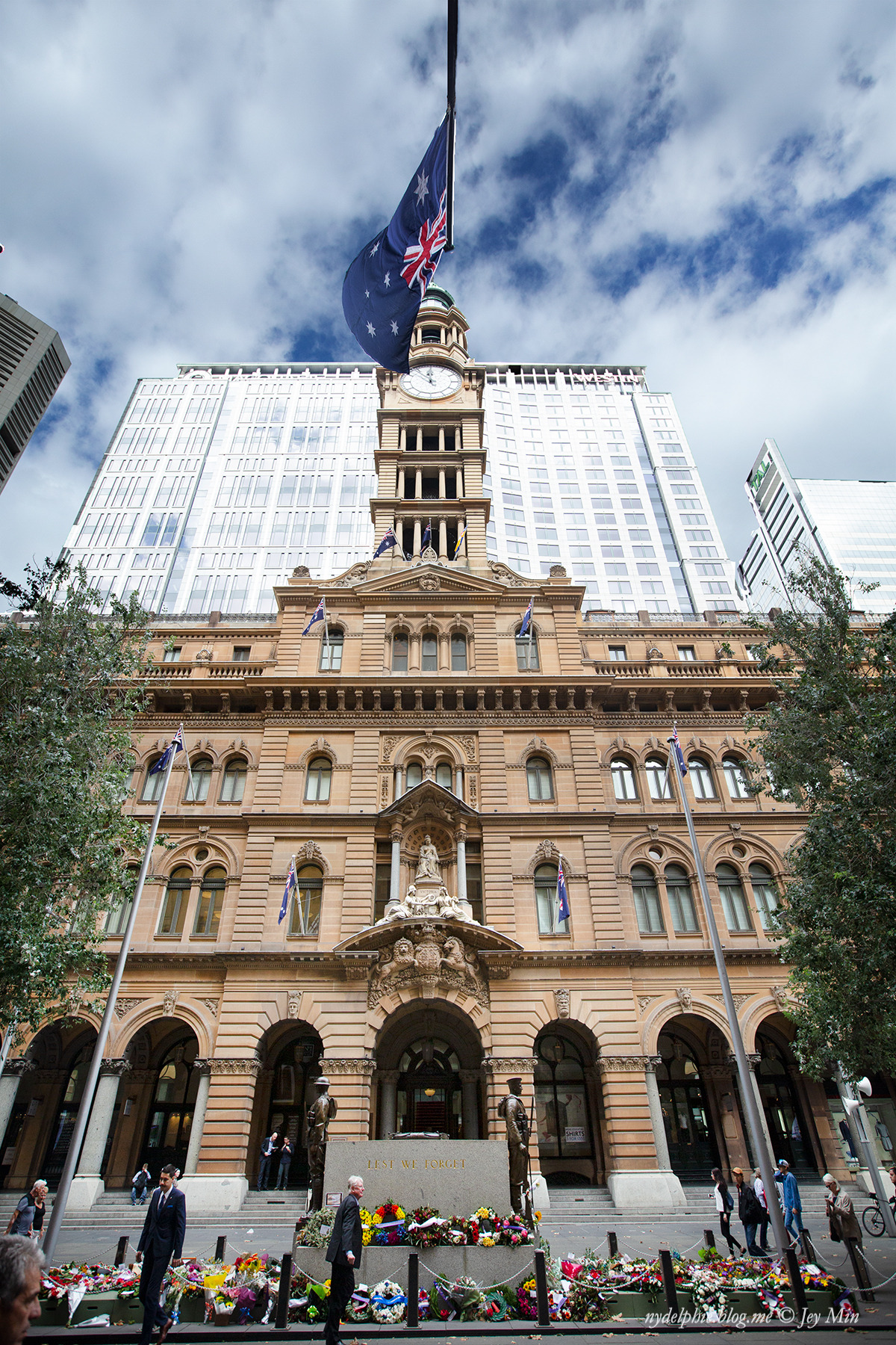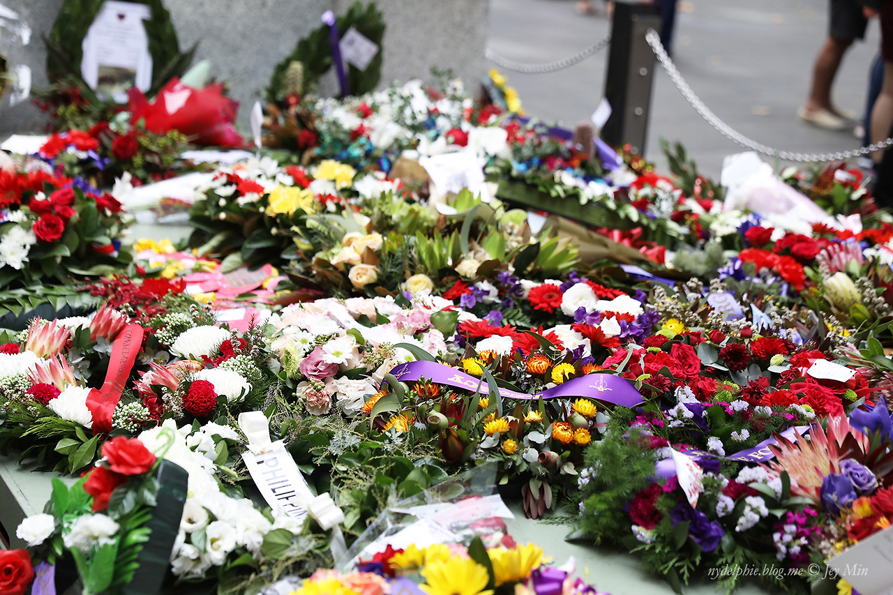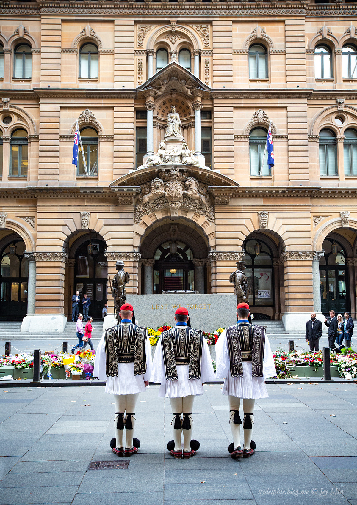 시드니 안작데이 행사의 시작과 끝은 마틴 플레이스의 '세노타프'입니다. '빈 묘지'라는 뜻의 세노타프는 시내 한복판에 있는 전몰장병 기념비인데, 그 앞에서 사람들이 헌화와 함께 추모의 마음을 표시합니다.