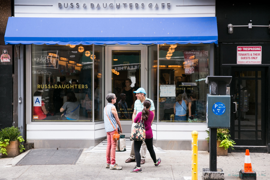 러스앤도터스 본 매장에는 테이블이 없어 테이크아웃만 가능하며 근처 Orchard Street에 새로 문을 연 Russ & Daughters Cafe는 카페 형태로 운영중이다.