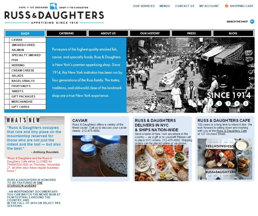 러스앤도터스는 유대인 정착민이 많이 살던 로워이스트사이드 지역에 Joel Russ 가 문을 연 1914년부터 무려 4대에 걸쳐 가게를 운영해오고 있다.