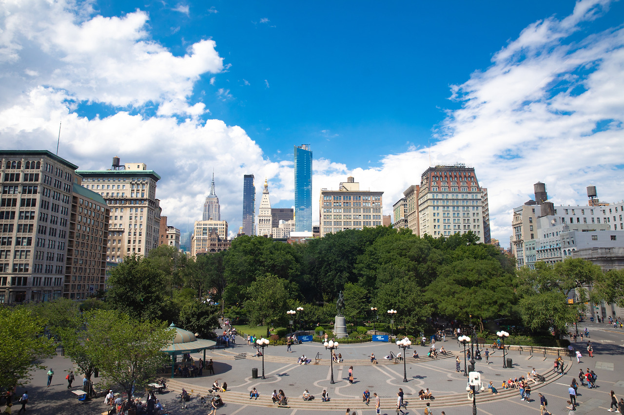 맨해튼을 세로로 관통하는 브로드웨이와 파크애비뉴가 만나는 지점에 있어 "유니언 " 스퀘어라는 이름을 가진 공원이 있습니다. 미드타운이 시작되는 14th Street 선상에 있으며 여러 도로가 만나는 지리적 이점 때문에, 유니언스퀘어는 오래전부터 시위 장소로도 인기가 높았습니다. 1882년 9월 5일, 만여 명의 노동자들이 브로드웨이를 따라 행진하다가 유니언스퀘어에서 집결했던 사건이 미국 노동절의 기원인데요, 이를 기념하여 1997년 공원 전체가 국가 역사유적(National Historic Landmark)으로 등재되기도 했죠. 공원 입구에는 조지 워싱턴의 기마상이 세워져 있습니다.