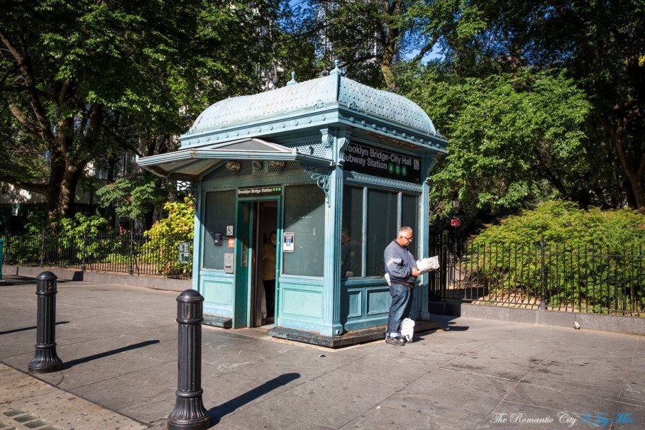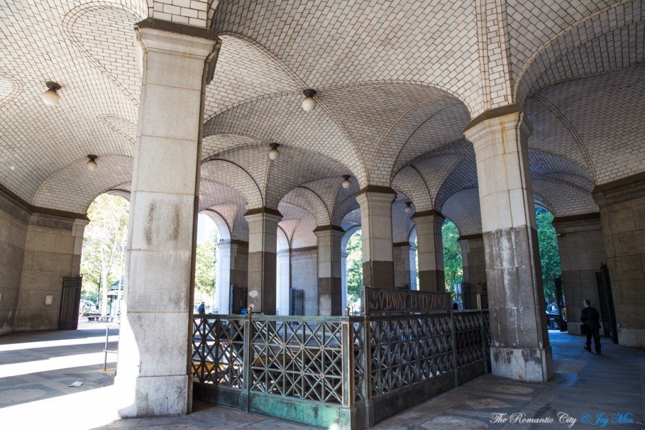 브루클린 브리지-시티홀 역은 지하철 역사 박물관과도 같습니다. 뉴욕에서 가장 웅장하고 화려한 고층건물인 뮤니시플빌딩 오른 편에 초창기 지하철역 입구를 그대로 보존하였고, 역 내부에는 과거 지하철 궤도와 플랫폼도 남아 있습니다.