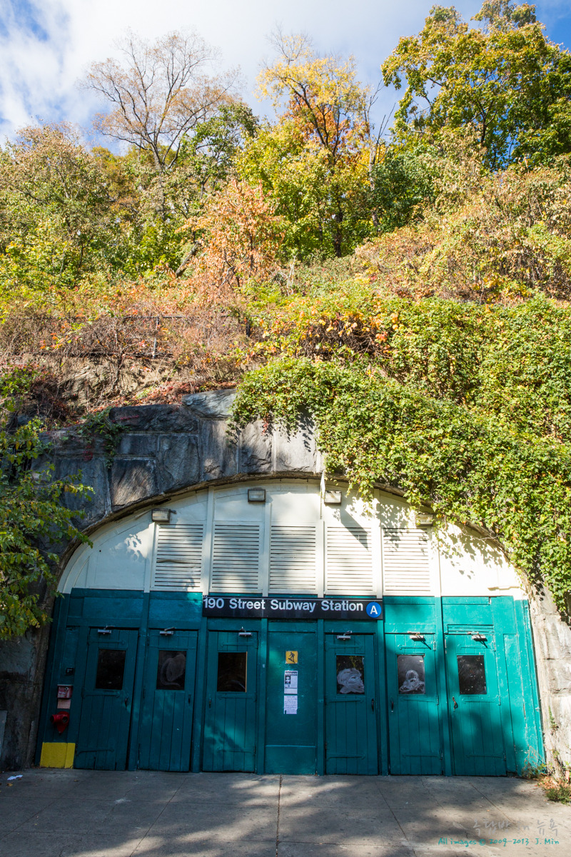 맨해튼 중심부에서 벗어난 190St에는 방공호를 연상시키는 지하철역이 있습니다. 특히 Bennett Avenue와 연결된 출입구는 지하철 플랫폼보다 낮은 높이에 있어서 통로를 따라 걷다 보면 점점 아래로 내려가며 밖으로 통하는 구조입니다. 맨해튼 북쪽에 있는 이 역을 소개하는 이유는, 뉴욕에서 가장 아름다운 미술관 중 하나인 클로이스터스를 방문할 때 이 역에서 내려야 하기 때문입니다.