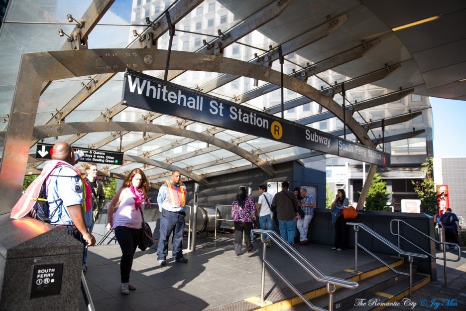 사우스페리 지하철역은 뉴욕 지하철 1호선의 종점이자, 자유의 여신상으로 가는 관광객, 스태튼 아일랜드에서 맨해튼으로 통근하는 거주자, 주변 파이낸셜 디스트릭트(월스트리트)의 회사원까지 언제나 사람들이 모여드는 터미널과 같습니다. 가까운 R호선 화이트홀 역과 연결되어 있는 지하철역 입구로 나오면 바로 앞에 스태튼 아일랜드 페리 터미널이, 10분 거리에는 자유의 여신상 크루즈 탑승장이 있어 지하철에서 배로 갈아타는 방식입니다.