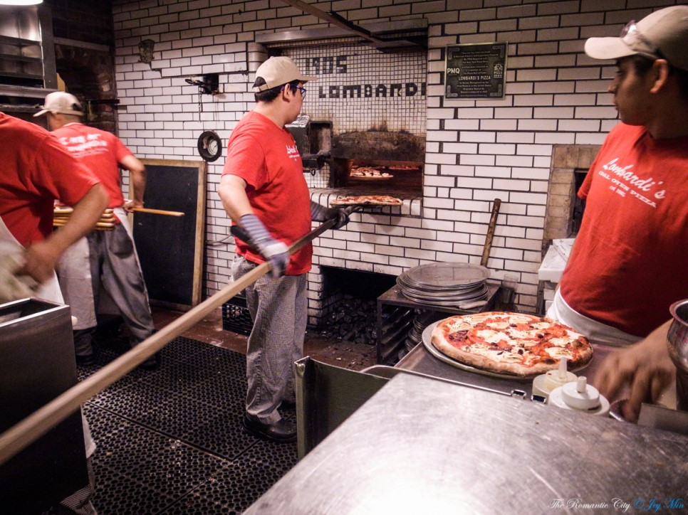 롬바르디는 장사 수완도 좋았지만 실력 있는 요리연구가이기도 했던 모양이다. 그는 1900년대 뉴욕의 현실에 맞게 나무 대신 석탄을 땔감으로 쓰는 화덕을 사용했는데 이것이 뉴욕 피자의 맛과 크기를 결정하는 요인이 되었다. 석탄 화덕의 내부는 수분을 함유한 나무를 태우는 화덕보다 훨씬 건조하며, 온도는 더 뜨겁다 보니 도우는 좀 더 두툼해지고, 피자의 크기는 커졌으며, 이를 익히는 시간이 늘어난 것이다.
