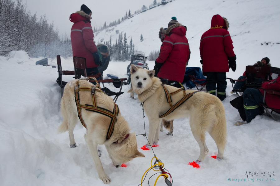 개썰매는 타는 것이 아니라 함께 달리는 것임을, 단순히 개에게 의지해 내달리는 것이 아니라 사람이 제 7의 썰매견이 되어야 한다는 것을 깨우치는 순간, 무섭게 속도가 붙기 시작했다. 유콘 퀘스트의 일부인 타키니 강(TakhiniRiver) 루트를 따라 달려나가는 우리. 어느덧 개와 인간 사이에는 끈끈한 유대감이 형성되어 있었다.