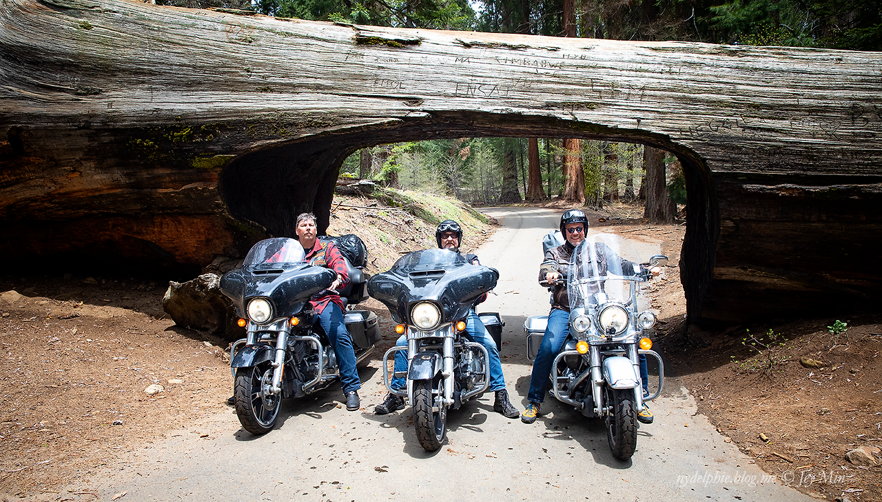 쓰러진 거목 밑동을 터널처럼 잘라낸 터널 로그(Tunnel Log) 앞에서 마침 모터사이클로 미국 여행 중인 3명의 독일 라이더들을 만나 사진을 찍어드리기도 했는데, 인생 사진이라며 정말 기뻐해 주었어요.