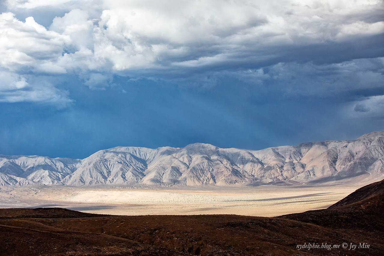 개인적으로 가장 좋아하는 국립공원이라 자주 찾는 곳, 이번 데스밸리 여행에서는 색다른 풍경을 많이 만날 수 있었어요. 그중 하나가 바로 지평선 위로 휘몰아치는 비바람이었죠!