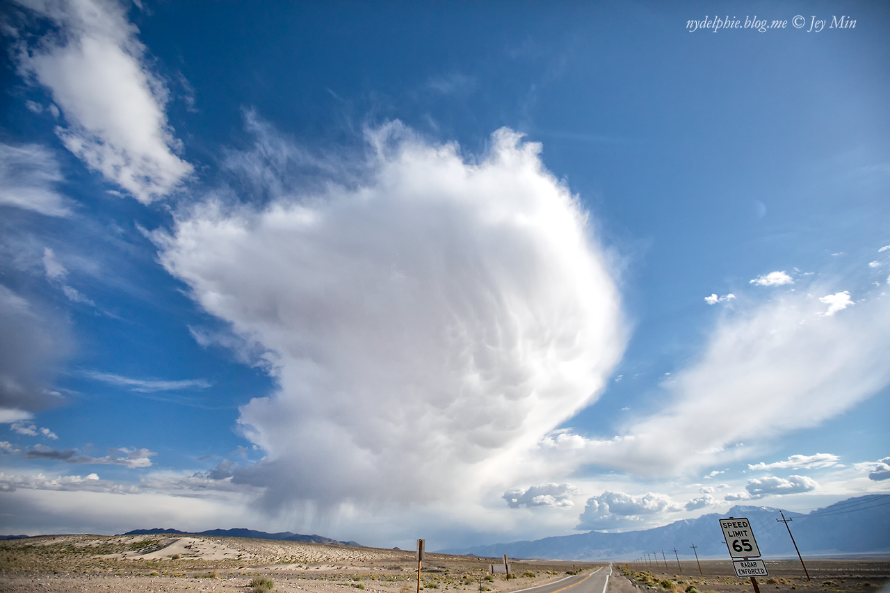 진입 초반에는 완벽한 사막 날씨를 보여주던 데스밸리였지만, 중간부터 날씨가 변하기 시작합니다.