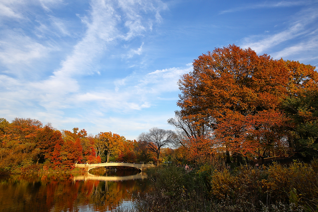가을 뉴욕 여행을 추억할 최고의 사진을 남기고 싶다면 바로 이곳 보우 브리지를 추천한다. 온통 붉게 물든 숲 한가운데 흰색 다리는 그림엽서의 한 장면을 연상케 한다.