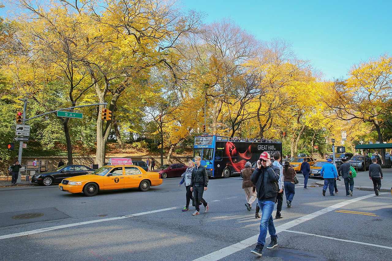 고풍스러운 플라자 호텔과 뉴욕의 고층 빌딩이 센트럴파크의 숲과 어우러진 풍경을 찍은 장소가 궁금하다면? 센트럴파크의 가장 남쪽, 59th Street와 뉴욕 5번가가 만나는 지점에서 공원길을 따라 걷는다. 센트럴파크 안으로 첫 발을 내딛는 두근두근한 마음은 눈앞에 펼쳐진 가을 풍경을 마주하는 순간 와~ 하는 탄성으로 변하게 된다.