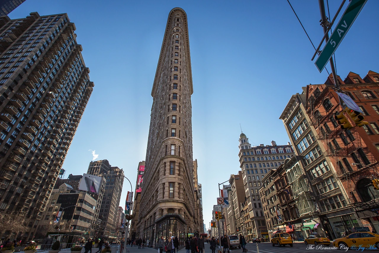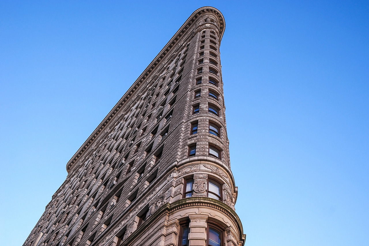 매디슨 스퀘어 파크에서 유니언 스퀘어로 가는 길목. 대각선으로 남북을 가로지르는 브로드웨이와 뉴욕의 상징 5번가가 교차하는 삼각형 공간에 정확하게 들어맞는 삼각형 단면을 가진 건물이 그 주인공이다. 원래 풀러(Fuller)라는 이름이었으나 다리미(Flatiron)를 닮았다고 해서 플랫아이언 빌딩으로 더욱 널리 알려졌다. 1902년 건축 당시 뉴욕에서 가장 높은 건물이었으며, 삼각지에 건축해야 한다는 핸디캡을 예술적인 디자인으로 승화시켜 미국의 국립 역사 지표(National Historic Landmark)로 지정되어 그 보존가치를 인정받았다.