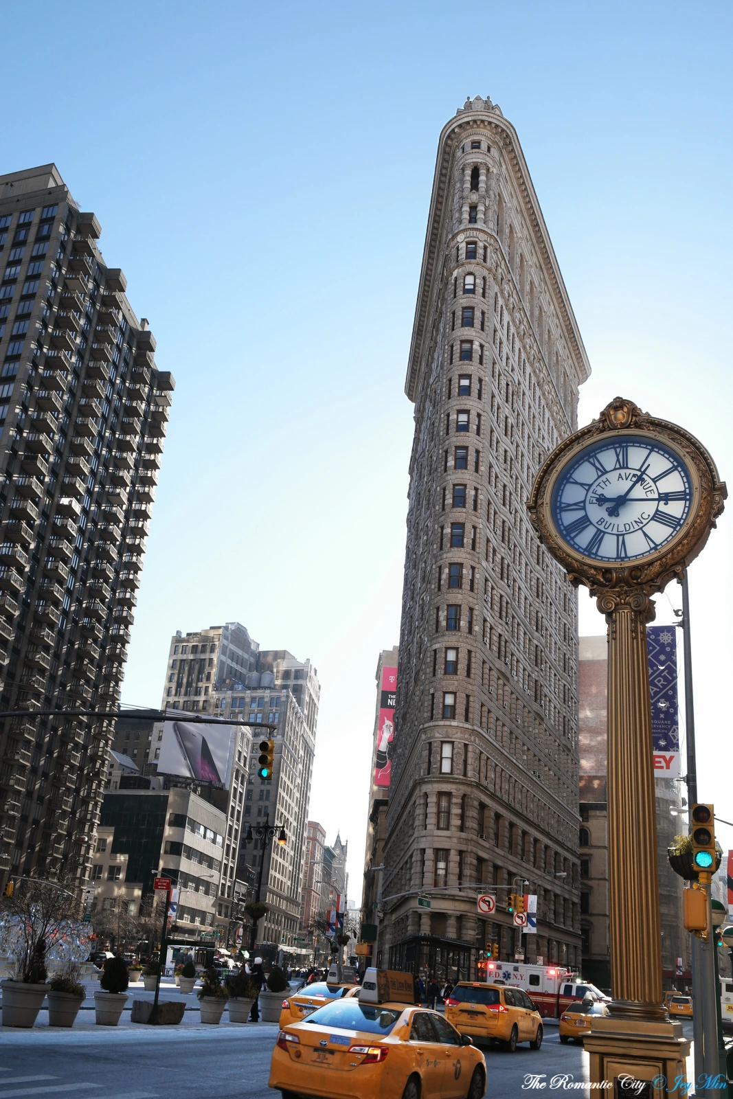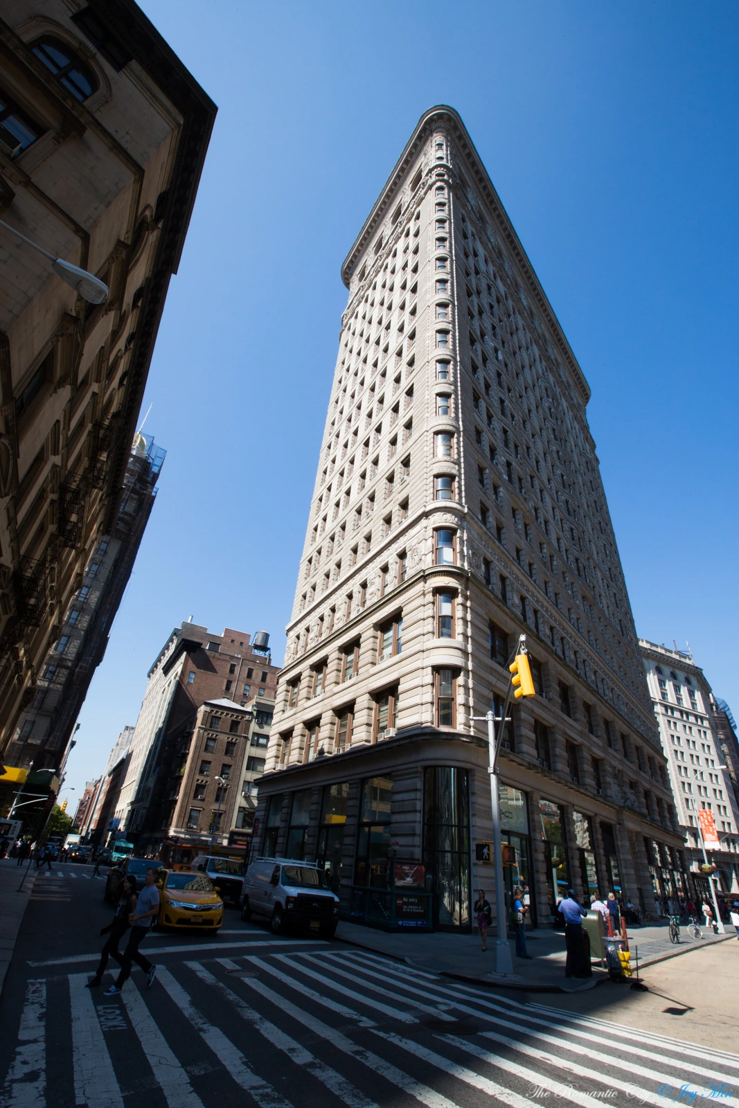 도심의 건물을 촬영하는 것이 대개 그렇게 어렵지만은 않다. 높은 건물 전체를 담으려면 멀리서 찍고, 이쪽 방향에 해가 떠 역광에 걸리면 반대 방향에 가서 찍으면 된다. 그런데 플랫아이언은 각도가 바뀌는 순간 다른 모습이 되어버려 시도 자체가 불가능하다. 건물의 균형미를 담으려 멀리서 촬영을 하다 보면 전후좌우로 장애물들이 막고 있어 그조차 쉽지가 않다.