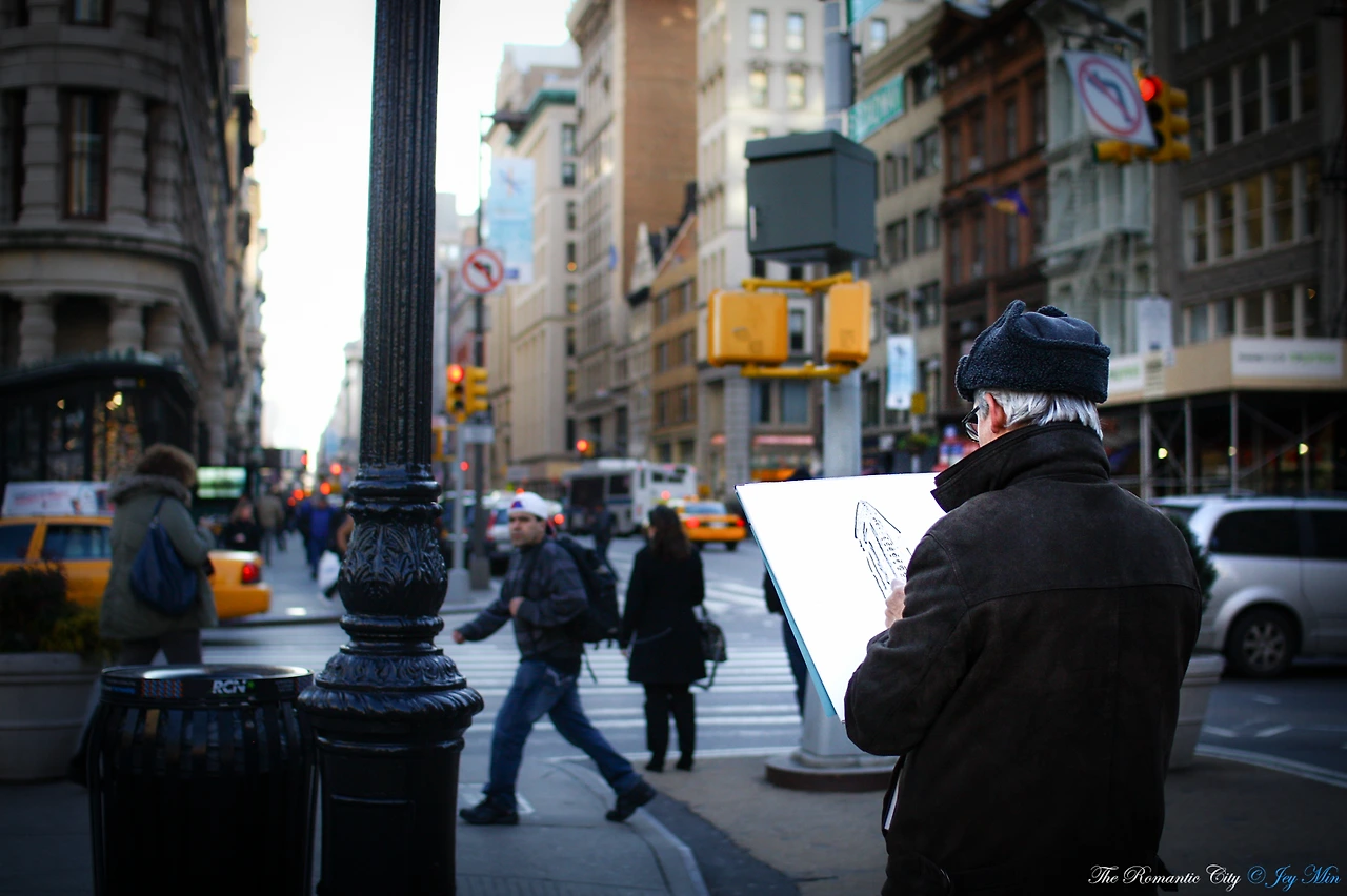 묵묵히 선 그분의 손 끝에서 플랫아이언 빌딩이 흔들림 없이 새겨져 나왔다. 사람들이 바삐 오가는 번화한 거리, 관광객들은 너무 쉽게 셔터를 누르고 "이 정도면 됐다!"며 자리를 뜨고 마는데, 느릿느릿 움직이는 그의 펜은 건물의 디테일을 정교하게 묘사하고 있었다. 나도 조금 더 노력해본다. 저 열정을 완전히 닮을 수는 없어도, 그냥 그래야 할 것 같아서.