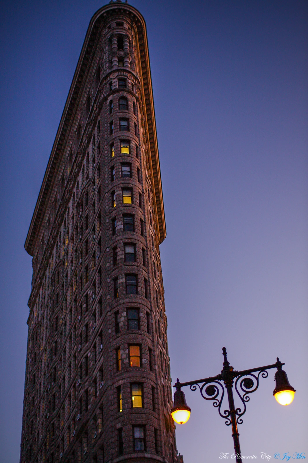 그러니까, 삼각형 건물의 디자인이 가장 균형적으로 보이는 장소는 바로 건물 정면의 플랫아이언 플라자인데 공교롭게도 건물 뒤에는 하루 대부분의 시간 동안 해가 떠 있다. 빌딩 왼편으로 떠오른 해는 정오에 잠시 머리 꼭대기에 머무르다가 빌딩 오른편으로 진다. 새파란 하늘도 뿌옇게 보이게 하는 역광이다. 이도 저도 안되면 화사한 조명이 한껏 건물을 꾸며주는 야경사진에 도전해 볼 텐데, 밤에 조명을 켜지 않는 플랫아이언은 어두운 밤에는 함께 잠들어버리는 철옹성 같다. 플랫아이언이 뉴욕에서 가장 촬영하기 어려운 건물로 남은 이유다.