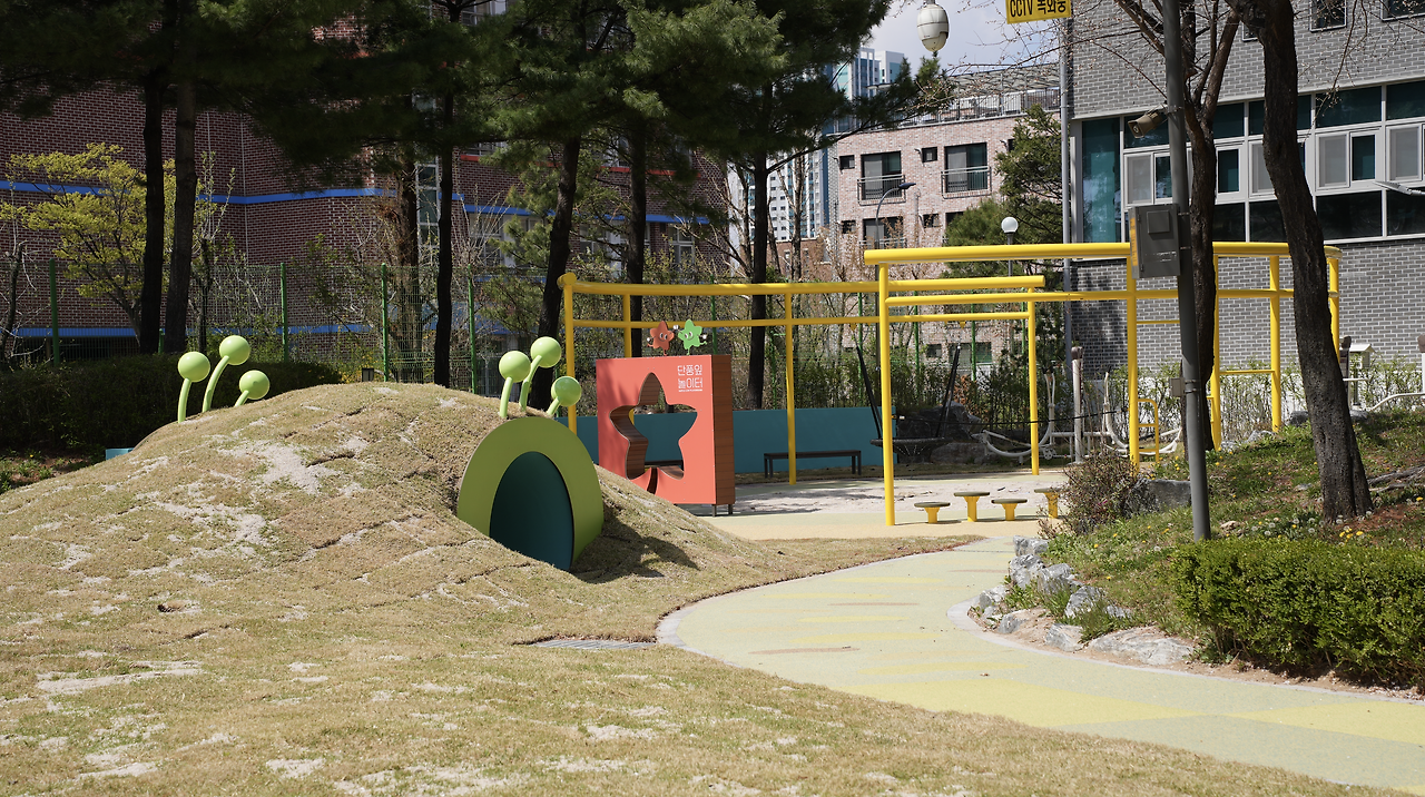 단풍잎 놀이터 2호에는 힘차게 뛰어오를 수 있는 잔디 언덕과 옹기종기 모여 이야기를 나눌 수 있는 아지트 터널 등 다양한 신체 놀이 기구가 있다. 어린이들이 오래, 더 많은 추억을 쌓을 수 있기를 바라며 여러 난이도로 놀이 시설을 구성해 영유아부터 초등학교 고학년까지 모든 연령이 재미있게 놀 수 있는 놀이터를 조성했다.