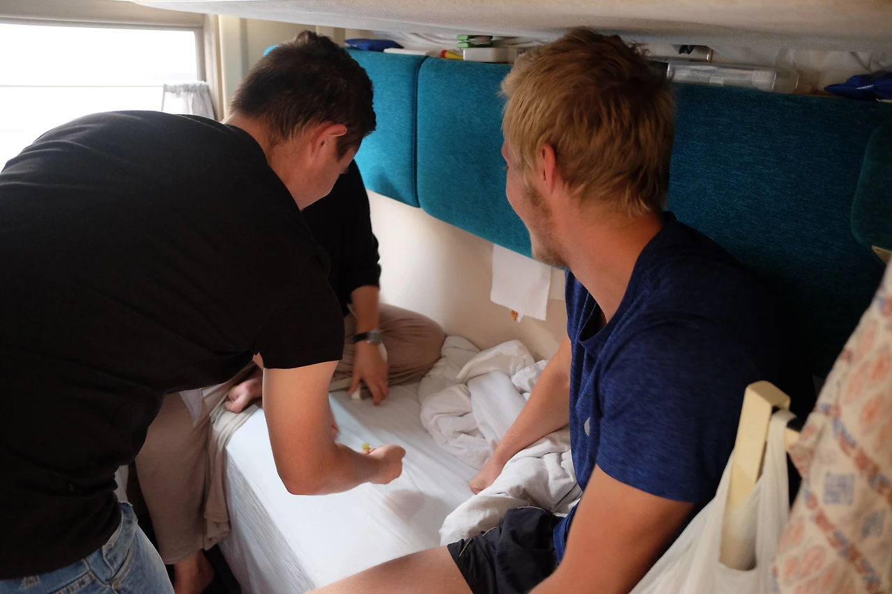 그날 있었던 일들을 보통 메모장에 적어두고 시간이 날 때마다 글을 쓴다. 쓰다 보니 8월 22일의 일기가 없다. 한 줄 정도의 간략한 그 어떠한 내용도 없었다. 곰곰이 생각해보니 그날은 함께 했던 티모시와 올라가 내리고 깔끔한 정장에 오랜만에 맡아보는 진한 향수 냄새를 풍기며 50대 중년으로 보이는 여성이 4호차로 들어왔다. 정말 심각할 정도로 말 수가 없었고 하루 종일 독서를 하거나 밥을 먹고 차를 마시는 일 외에는 아무것도 하지 않았다. 혜원이와 나는 숨이 막힐 정도로 답답함을 느꼈고 덩달아 우리도 하루 종일 책을 읽고 자는 패턴이 되었다. 그리고 흔적이 없었던 또 다른 이유는 21살의 친구들과 소중한 시간을 보냈기에. 찡긋.