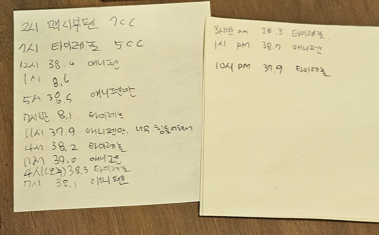 잊으면 안 된다. 발열로 인한 경기를 막기 위해 37.5도만 넘어가도 바로바로 해열제를 먹여야 한다. 해열제는 어떻게 먹이겠는가? 입으로 먹인다. 즉, 약병을 얼굴에 가까이 가져가야 한다. 제길! 보통 울고 발버둥 치는 게 아니다. 10킬로 넘어가는 생선만 낚아도, 파닥이면 들어 옮기기 어렵다. 준이는 걷지 못해도, 생선보다는 힘이 세다.