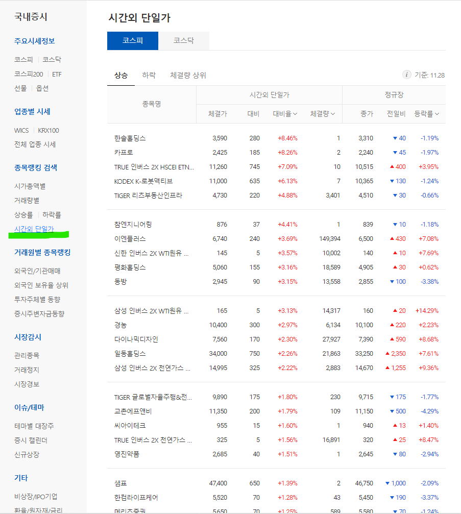 '시간외 거래'의 결과는 우리도 쉽게 확인할 수 있어요.