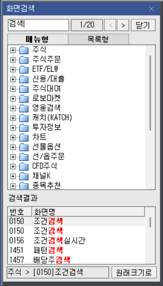 조건검색을 만드는 창은 '0150 조건검색'창입니다.