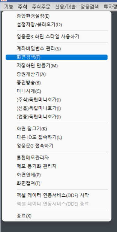 영웅문 조건 검색창의 개별 설명을 링크로 첨부합니다.