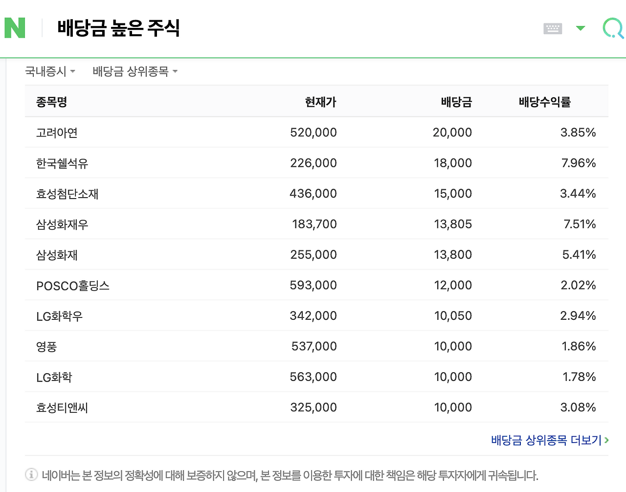 국내 배당 주식은 더 쉬워. 네이버에서 '배당 높은 주식'이라고 검색해도 알려줘.