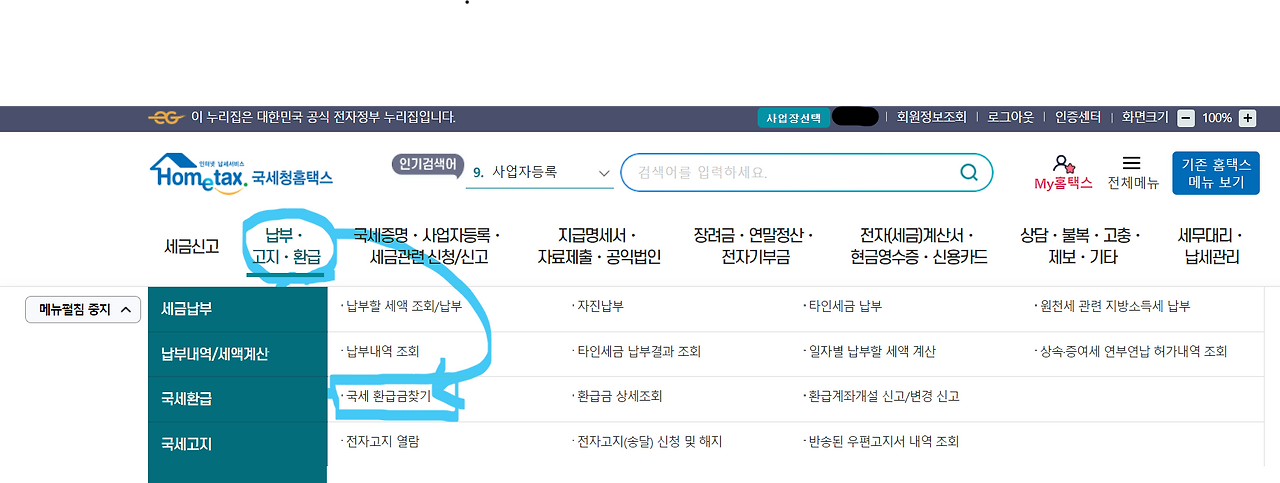 조회 및 환급신청은 국세청 홈페이지에서 가능합니다.