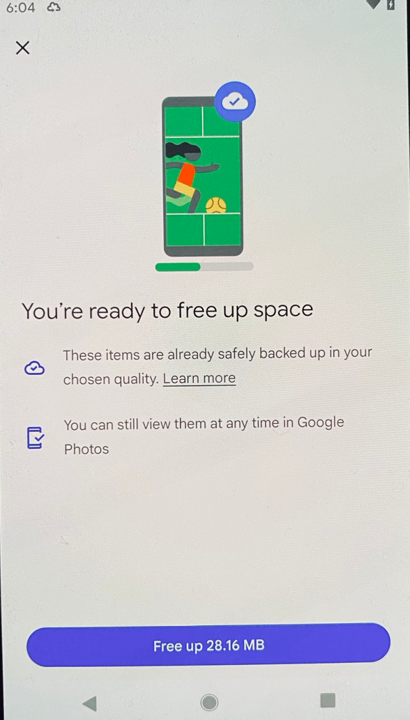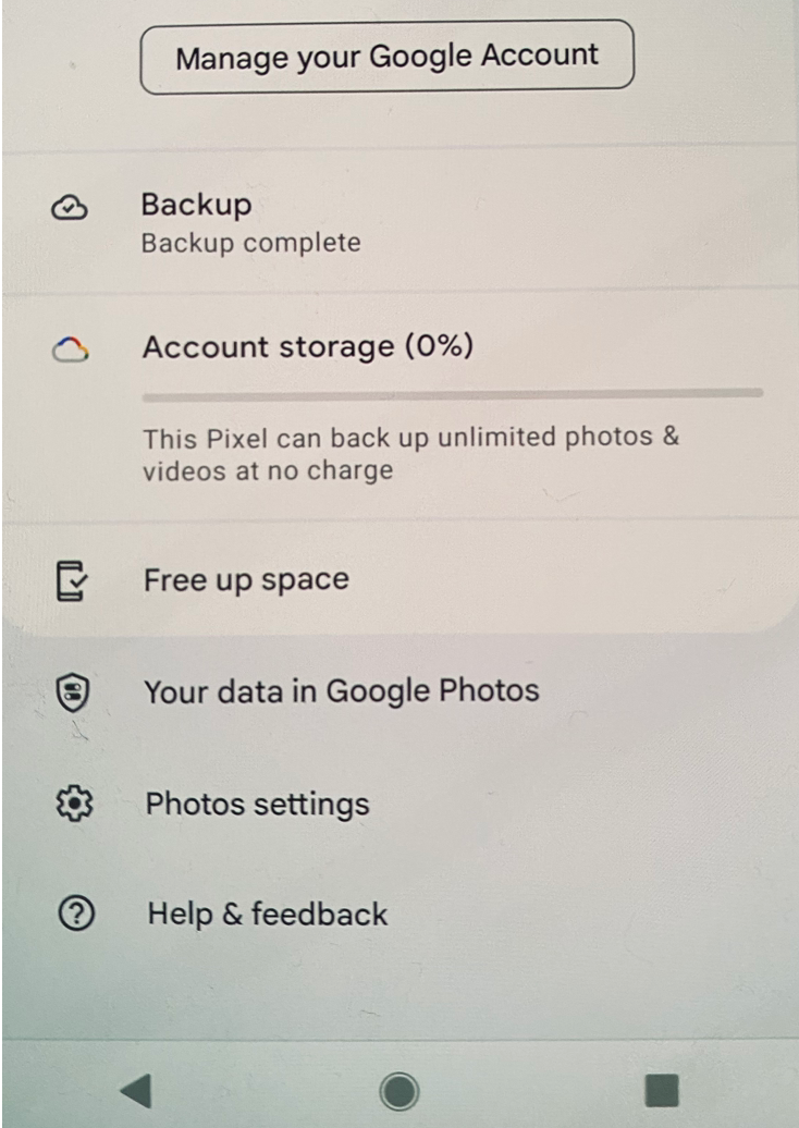 정기적으로 픽셀1의 구글포토를 확인하여 ‘Free up space’를 진행 주세요.