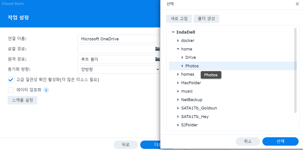 다. 로컬(시놀로지)에서는 Photos 폴더를 설정
