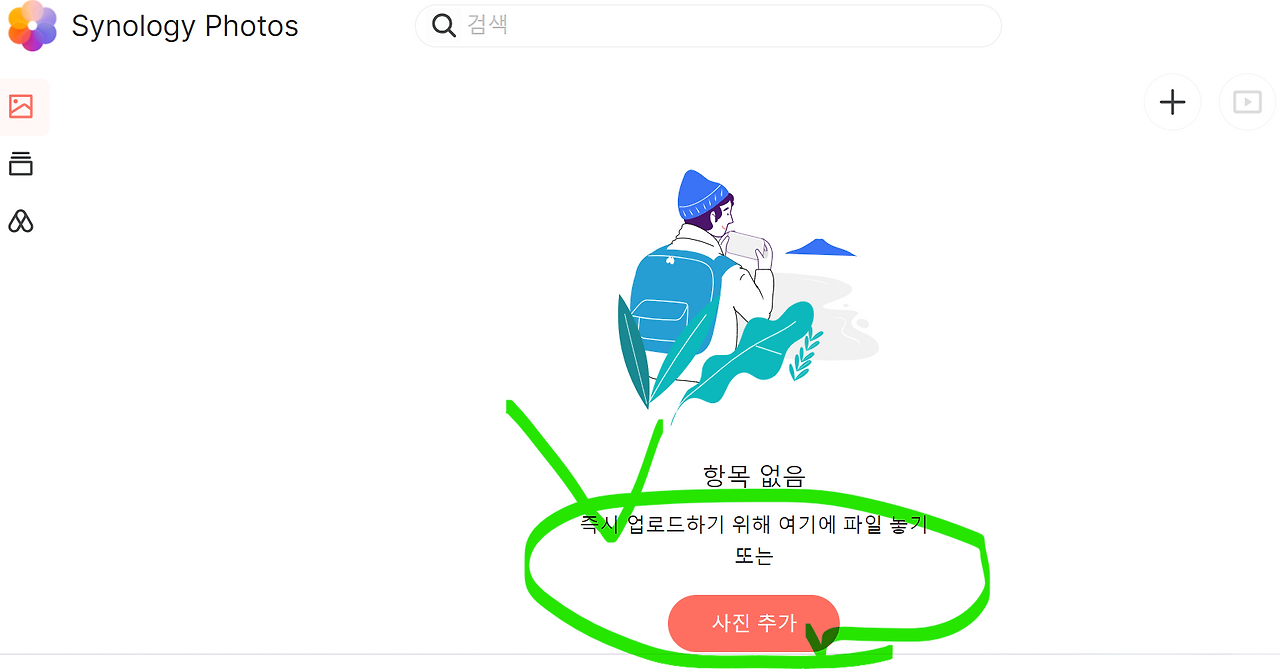 아이폰 혹은 안드로이드폰을 통해서 찍은 사진은 해당 기기에서 시놀로지의 어플을 통해 업로드합니다.