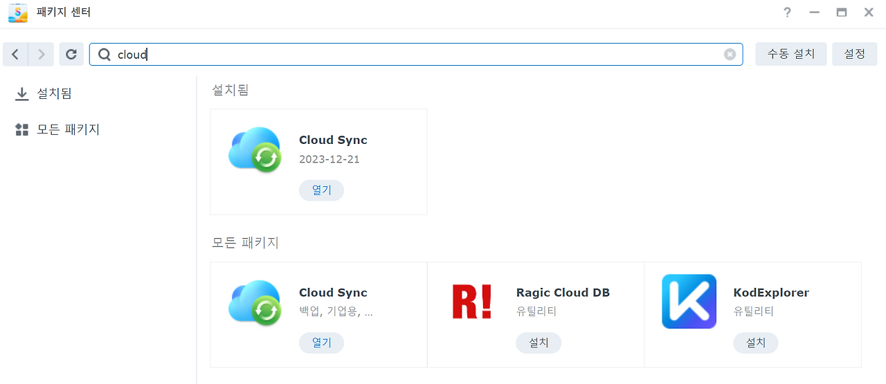 가.시놀로지의 클라우드 싱크 패키지 설치