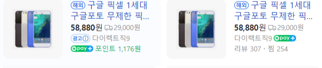 먼저, 픽셀 1은 이베이나 다른 사이트를 통해도 가격이 큰 차이가 없으니 네이버를 통해서 구매합니다.