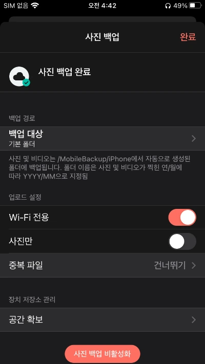 각종 디바이스는 충전 시에 새로운 사진을 자동으로 시놀로지(NAS)에 업로드를 합니다.